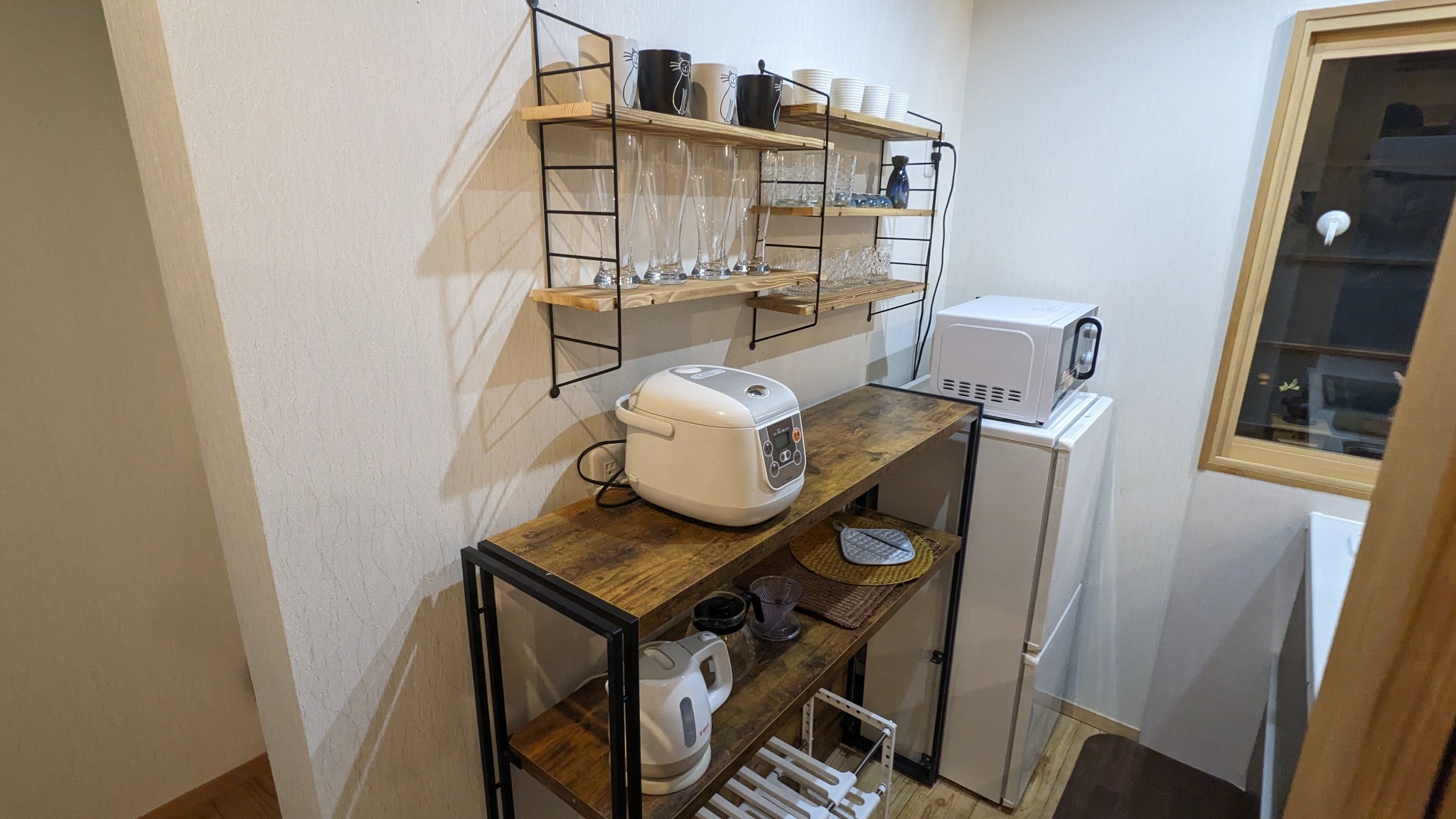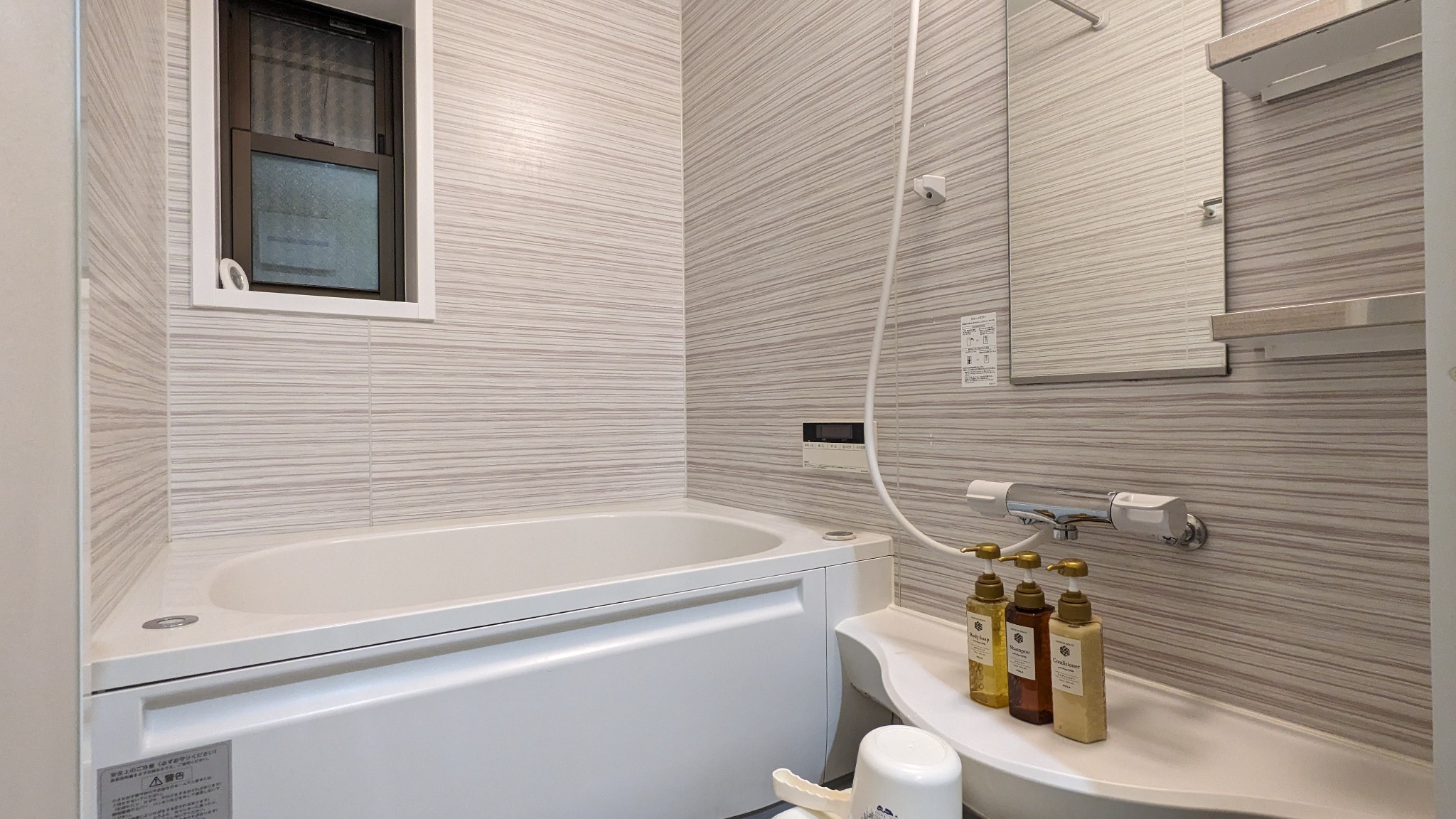 テレビ、インターネット接続(無線LAN形式)、冷蔵庫、ドライヤー、アイロン、石鹸(固形)、シャンプー、ハミガキセット