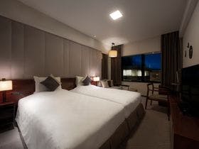 宿泊前日に格安で予約出来ました。\19時頃のチェックインでしたが、フロントには3名おられいくつかの質問にも的確に答えて頂きました。\安いので部屋も期待はしていなかったのですが、思ったより広く快適に過ごせました。\ユニットバスではありましたが、やや大きめで清潔感もありました。\唯一の不満はベッドサイドにコンセントが無いくらいでしょうか。\全体的には期待以上でした。