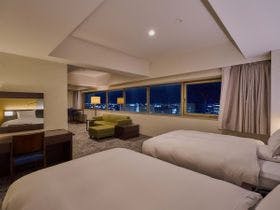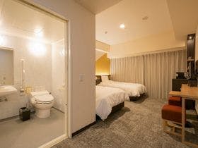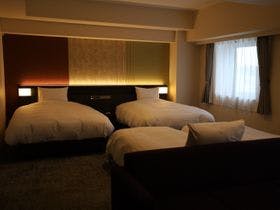 テレビ、衛星放送(無料)、電話、インターネット接続(無線LAN形式)、湯沸かしポット、お茶セット、冷蔵庫、ドライヤー、ズボンプレッサー(貸出)、電気スタンド(貸出)、アイロン(貸出)、加湿器(貸出)、洗浄機付トイレ、ベビーベッド、ボディーソープ、シャンプー、リンス、洗顔ソープ、ハミガキセット、カミソリ、ブラシ、タオル、バスタオル、浴衣、スリッパ
