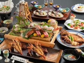 - 伊豆温泉唯一の砂風呂を愉しめる、伊豆の高級食材をふんだんに使った味もボリュームも自慢の老舗旅館。