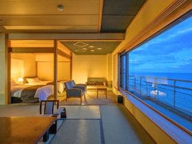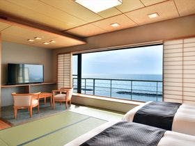 湯量豊富な渚の大露天風呂が男女別々に有り・潮の香りと温泉が楽しめる。