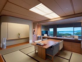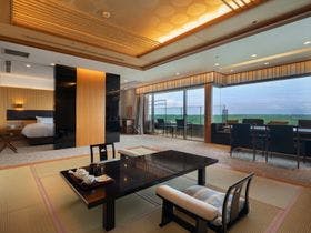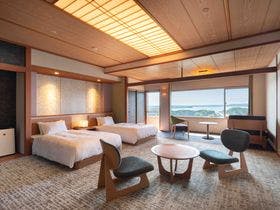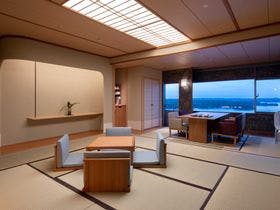 祝いごとのため、県外の親族も招いて夕食会&宿泊利用しました。\料理はお祝い用になっており、華やかで味付けも良く、高級食材が上手に調理されていました。鯛ごはんやアオサ汁、漬物も美味しくみんなが喜んでいました。\10階特別室は、露天風呂付き和洋室でお金を出す価値のある部屋で素晴らしい景色が楽しめました。\スタッフの皆さんの親切・丁寧な対応に、出発まで気持ちよく過ごせました。