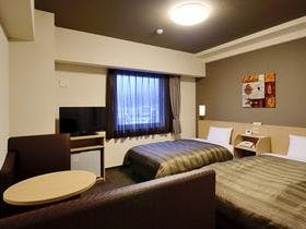 1泊2日 ツイン 食事なし(朝食は無料)2名利用 港大通りに面しているのでわかりやすく駐車場も立体なので止めやすい、この時は1階がいっぱいだったので2階に止めた、スーツケースを持ちながら階段を下りるのでやや不便だった、ロビーに人が多くいたがチェックインはホテルの案内を聞くだけなのですぐに終わった、部屋はビジネスホテルとしては広めなのでゆっくりできた、このホテルにはラジウム人工温泉大浴場「旅人の湯...