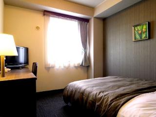 市の郊外に位置するビジネスホテル。周辺は、店舗、人家、農地などが混在する地域で、飲食店等は少ない。ホテルから徒歩2〜3分くらいの所にスーパーがあり、夕食等の買物に便利。建物は、外観、室内ともやや古い感かする。室内は、広くもなく狭くもなく、普通の広さ。ただバスルームは狭く、浴室、トイレとも使い勝手が良くなかった。ベッドは、セミダブルで寝心地は良かった。朝食は、和洋のバイキングで種類も十分で、美味しか...