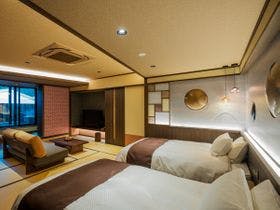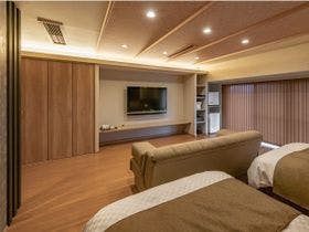 テレビ、衛星放送、ビデオデッキ(貸出)、電話、インターネット接続(無線LAN形式)、湯沸かしポット、お茶セット、冷蔵庫、ドライヤー、ズボンプレッサー(貸出)、電気スタンド(貸出)、アイロン(貸出)、カセットデッキ(貸出)、加湿器(貸出)、洗浄機付トイレ、ボディーソープ、リンスインシャンプー、ハミガキセット、カミソリ、タオル、バスタオル、浴衣、スリッパ、金庫