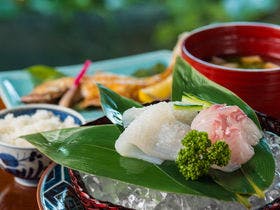 おしゃれな旅館です。\隠れ家的な旅館の雰囲気を醸し出しています。\内装はおしゃれな古民家で、普通の民宿旅館とは一線を画しています。\料理も新鮮な魚料理が提供されます。\冬はカニですが、夏から秋にかけては鯛、あんこう、いか、のどぐろ等が鍋、刺身、焼き等で出てきます。\値段は1名2万円ぐらい。(カニの季節は値段が上がります。)