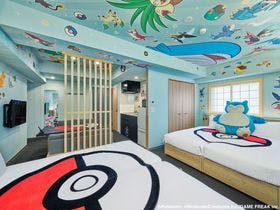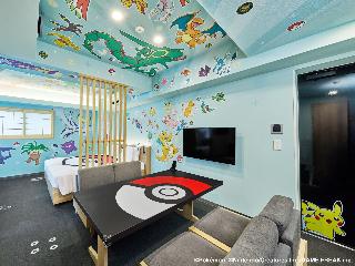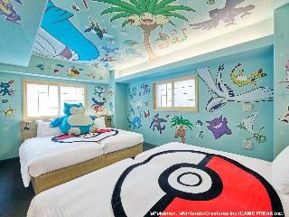 ホテルの入り口は清潔感あふれたビジネスホテル。フロントの接客も丁寧です。\ポケモン感が出てくるのは部屋に入ってからのみ。\部屋で調理ができるので、持ち込みはアリ。ただし油がないのでホットケーキなどは不可。\壁紙一面にポケモンが貼ってあるので子どもは嬉しい。巨大カビゴンに会いたかったらここでもふもふできます。他のポケモンとは会えないので、どれくらいカビゴンが好きかがすべて。\平日と休日で値段がかなり...