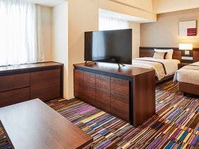 テレビ、有料ビデオ、衛星放送(無料)、ビデオデッキ(貸出)、電話、インターネット接続(LAN形式)、インターネット接続(無線LAN形式)、湯沸かしポット、お茶セット、冷蔵庫、ドライヤー、ズボンプレッサー(貸出)、電気スタンド、アイロン(貸出)、加湿器、個別空調、洗浄機付トイレ、ボディーソープ、シャンプー、リンス、ハミガキセット、カミソリ、ブラシ、タオル、バスタオル、ナイトウェア、スリッパ、パジャマ、金庫