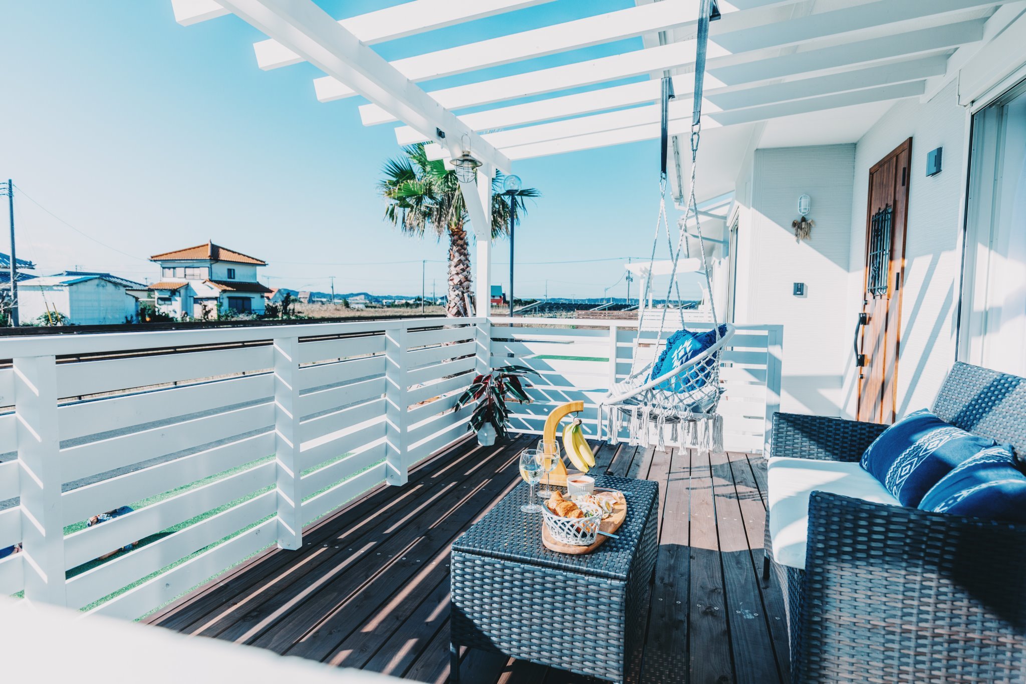 - 新築1棟貸切カリフォルニアテイストの宿。屋根・ひさし付きBBQ小屋で小雨でもBBQ可!海5分。