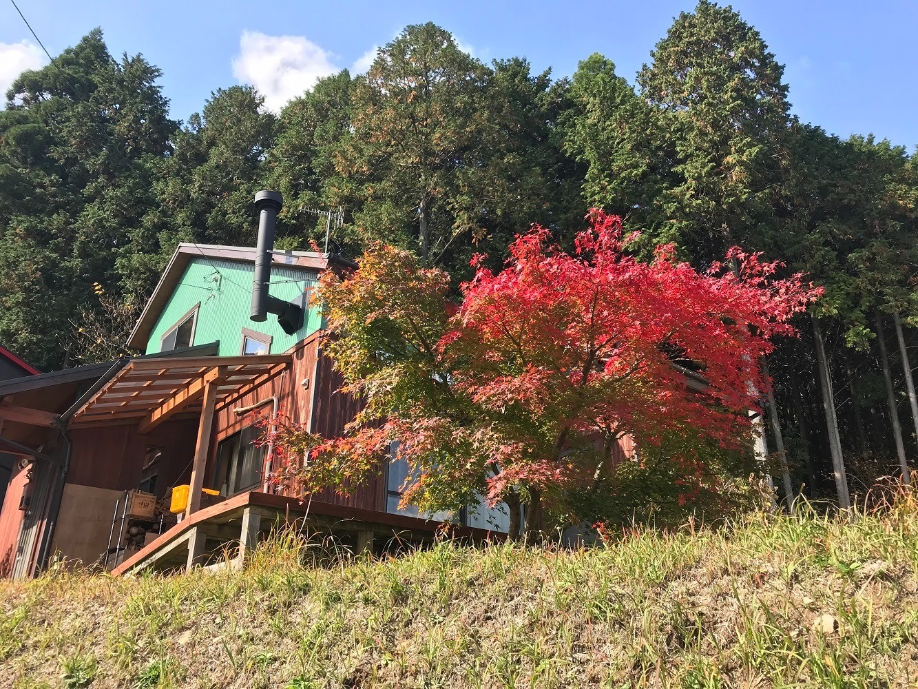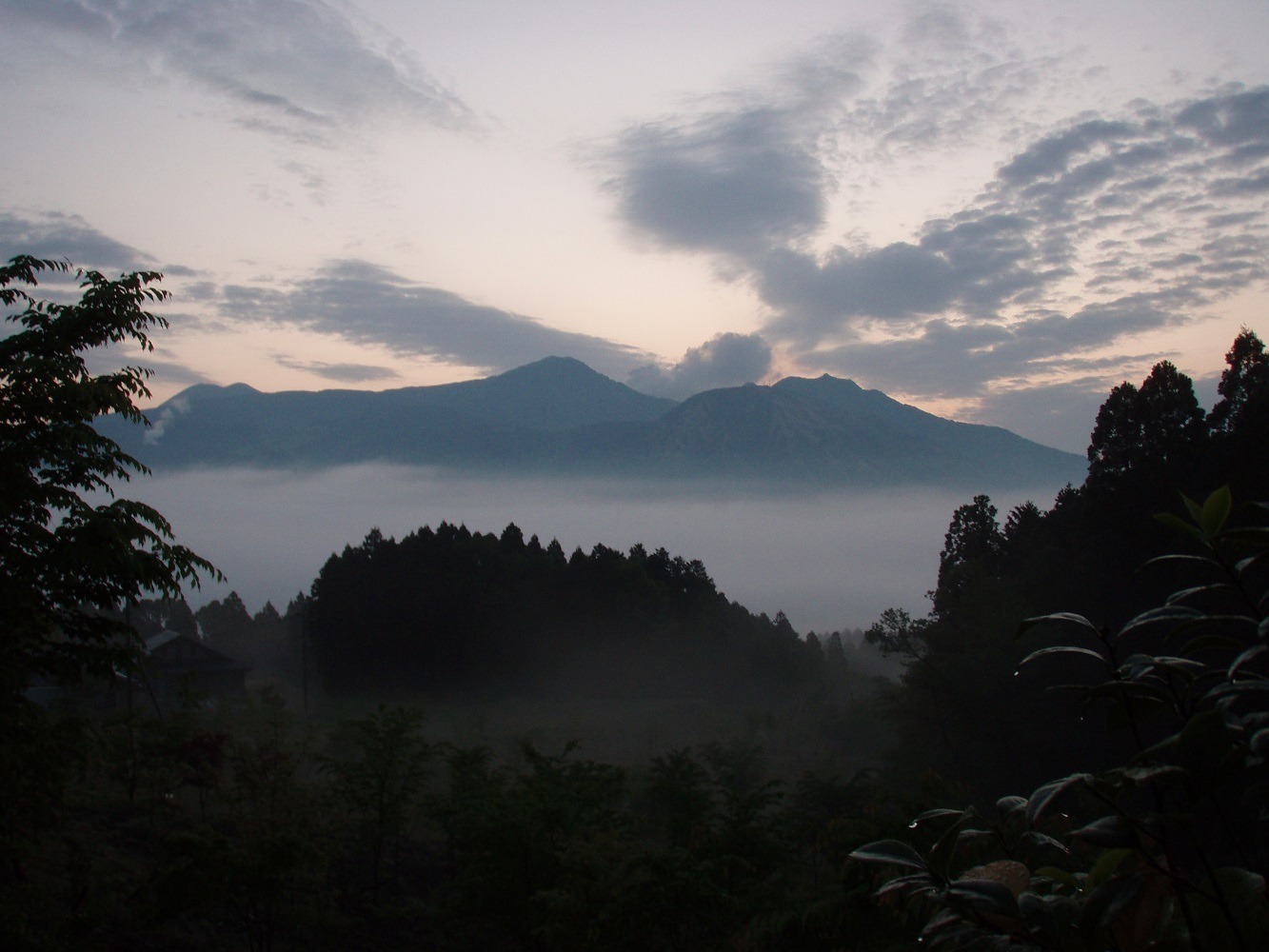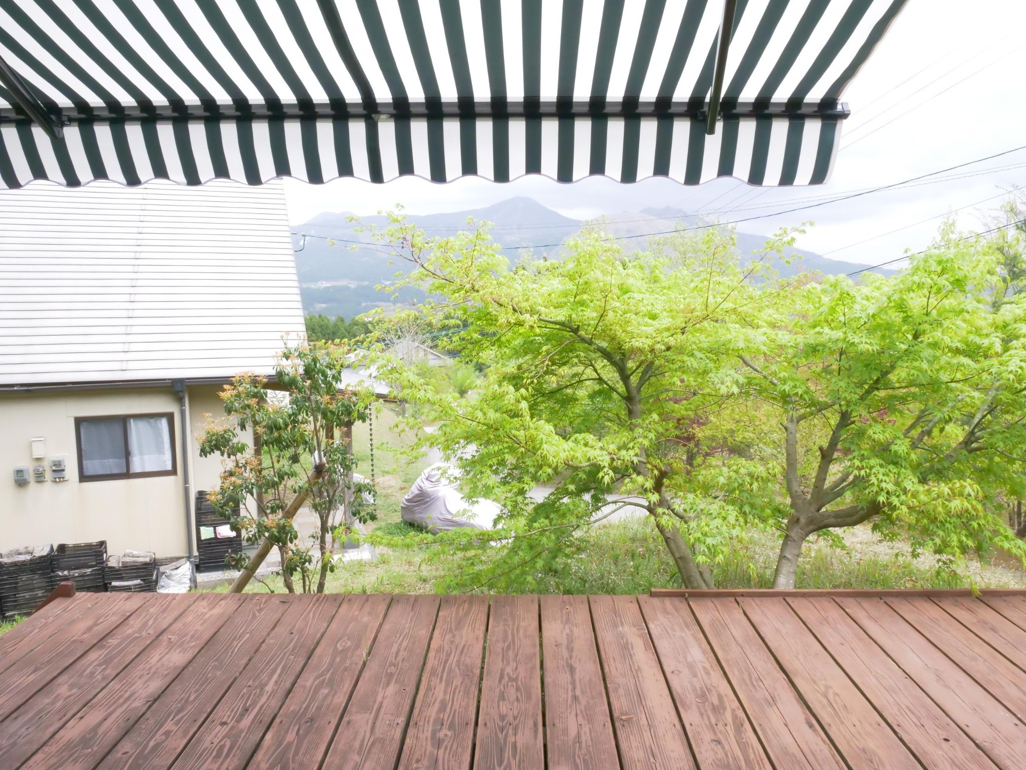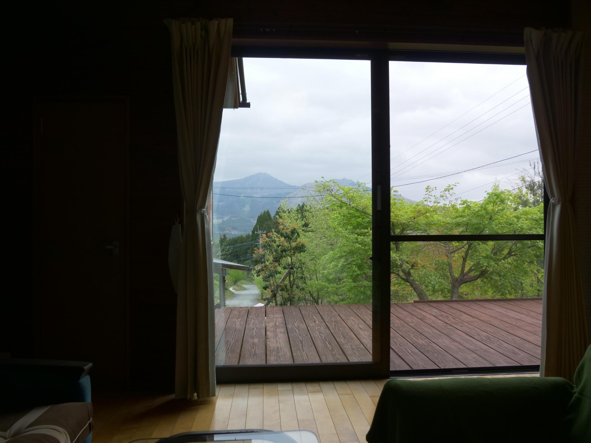 「南阿蘇のOGA亭」は、10軒ほどの家がある別荘地で、南外輪山の中腹にあり、テラスから阿蘇五岳が広が