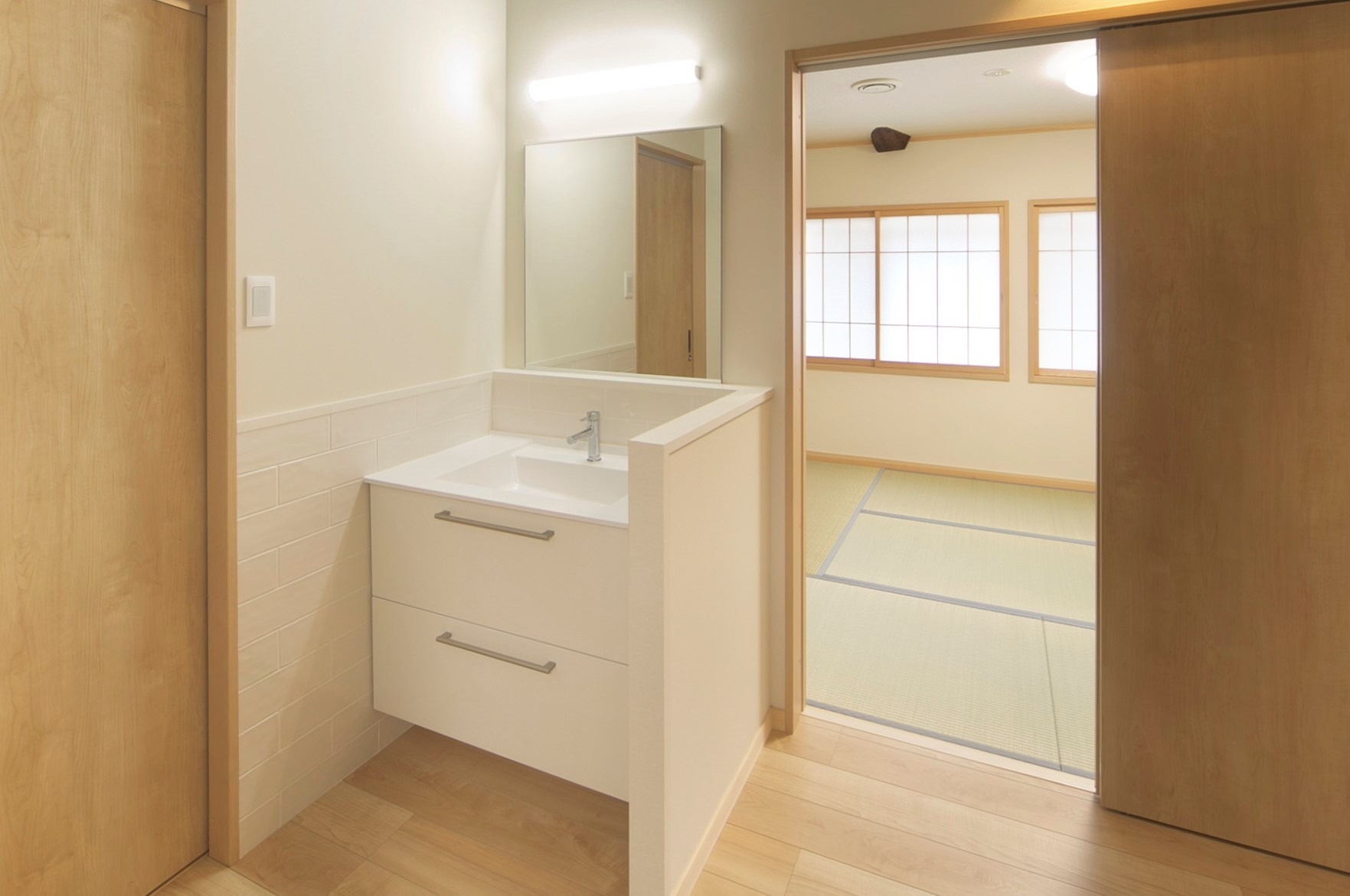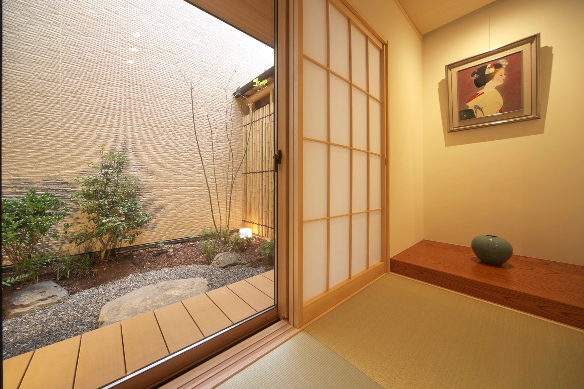 - 大正時代に建てられた京町家を現代に適合した耐震性能、居住性を合せ、現代風の町家に改修しました。