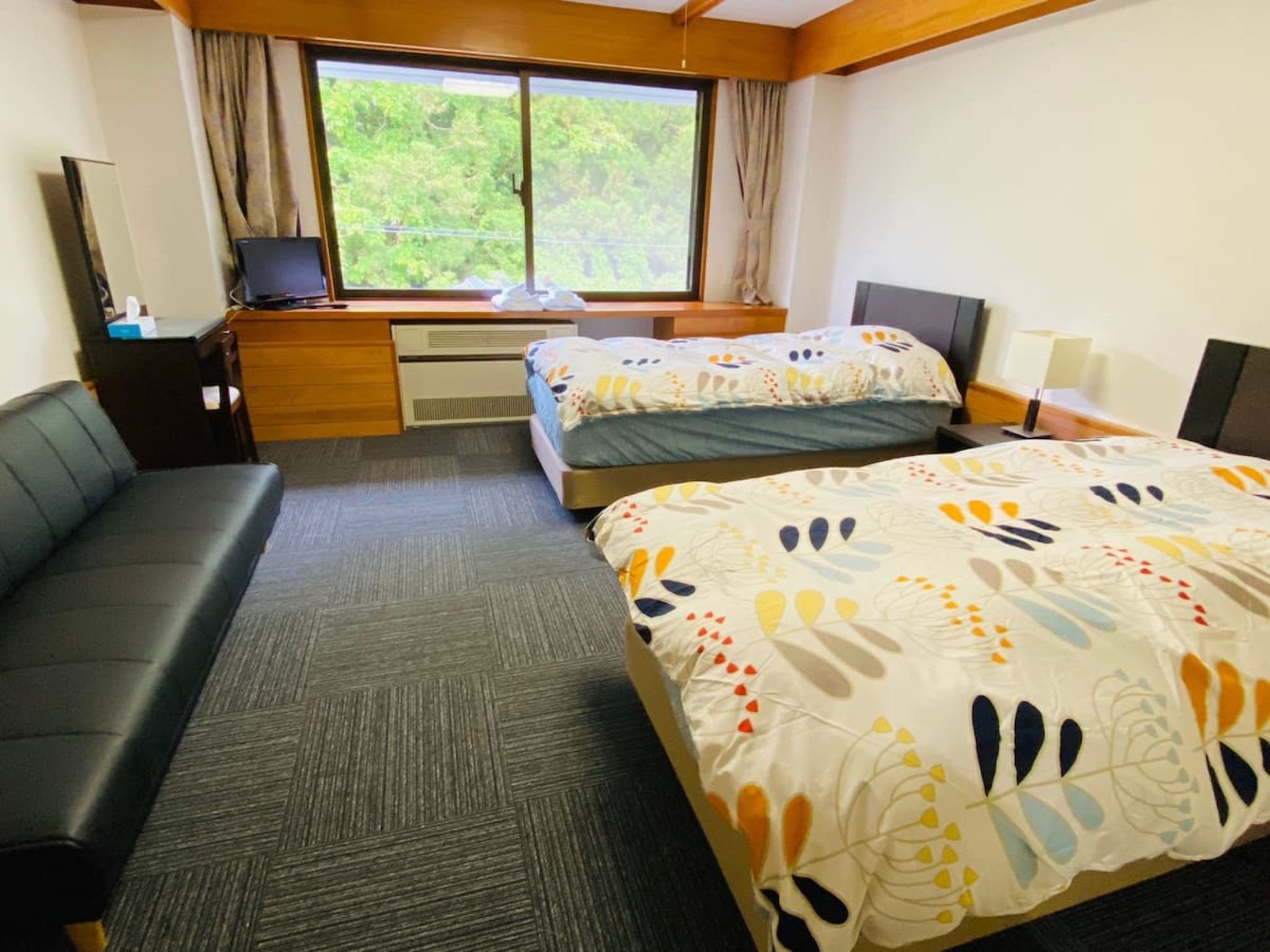 テレビ、インターネット接続(無線LAN形式)、冷蔵庫、ドライヤー、石鹸(固形)、シャンプー、ハミガキセット
