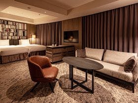 テレビ、衛星放送、インターネット接続(無線LAN形式)、湯沸かしポット、冷蔵庫、ドライヤー、ズボンプレッサー(貸出)、電気スタンド(貸出)、アイロン(貸出)、加湿器、個別空調、洗浄機付トイレ、ベビーベッド、石鹸(液体)、ボディーソープ、シャンプー、リンス、コンディショナー、ハミガキセット、カミソリ、くし、ブラシ、おふろセット、タオル、バスタオル、ナイトウェア、スリッパ、金庫