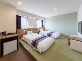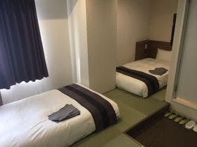 隣駅のイベントに参加するため、ここで前泊しました。新習志野駅の南口を出るとすぐにホテルが見えたので、夜遅くの到着でも迷わず行くことができました。建物が広くて新しく、このご時世で宿泊客が少なかったこともあり、朝食バイキングも使い捨て手袋利用でゆっくり選んで食べられました。利用した小上がりツインの部屋は、畳の上にベッドが置いてあり、靴を脱いで過ごせて疲れが取れました。\建物の広さの割にエレベーターが小...