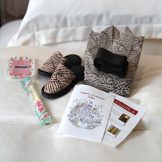 テレビ、衛星放送、電話、インターネット接続(LAN形式)、インターネット接続(無線LAN形式)、湯沸かしポット、お茶セット、冷蔵庫、ミニバー、ドライヤー、アイロン、洗浄機付トイレ、ボディーソープ、シャンプー、コンディショナー、ハミガキセット、カミソリ、シャワーキャップ、タオル、バスタオル、ナイトウェア、バスローブ、スリッパ、金庫