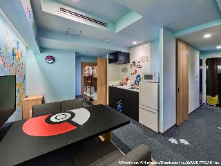 ホテルの中はポケモンだらけでしたが、壁紙にポケモンがいるだけ。\あとは、ベッドの上にどデカいカビゴンがあるだけ。\トイレやお風呂はポケモンなしの普通でした。\子供は喜びましたが、1泊、食事なしで家族4人、7万超えはかなり痛い出費でした…(^_^;)