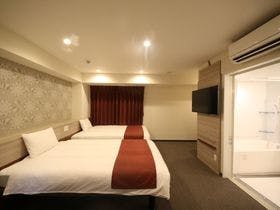 沼津市へ用事があり、金曜日から2泊利用しました。DXツインのお部屋で、24㎡の広さでベットとテレビ設置の壁までスペースがあり\ゆったりしているものの、ベット以外に家具類はソファがなく机は持ち運び式の小さな簡易的なもののみでした。簡易机(安定が悪い)を出して、ベットに座ってテレビを見ながら室内で過ごしましたが、うまく有効利用できないかなと感じました(簡易机に置いた飲み物\を2回倒してしまいました...