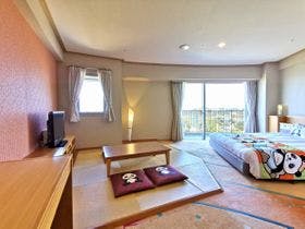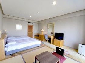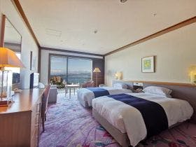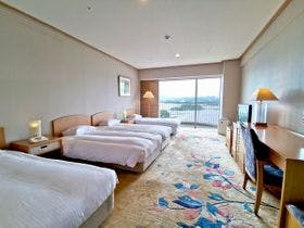 お部屋は充分な大きさで、海の眺めもよく、カーペットが少し汚れていましたが、これくらいなら仕方ないかと思える程度でした。レストランのブッフェは、連れ合いが菜食主義なので、食べられる物を探すのに少し苦労しました。日本には美味しいお野菜やお豆腐類も沢山あるのに残念です。おまけにお野菜のお料理にもベーコンだとかお肉が足してあったりしました。フロント周りのスタッフがイマイチかと思いました。駅からの送迎バスの...