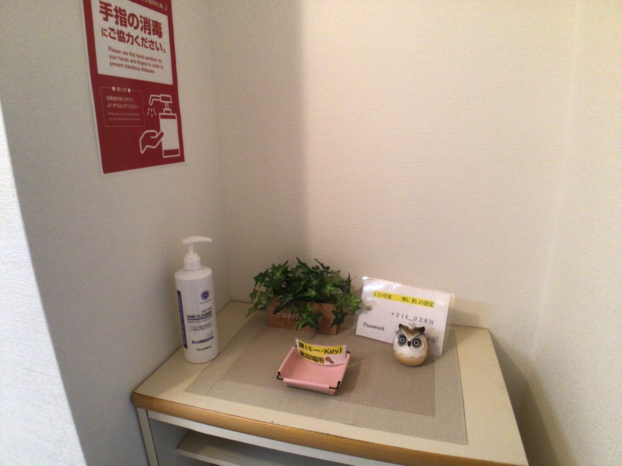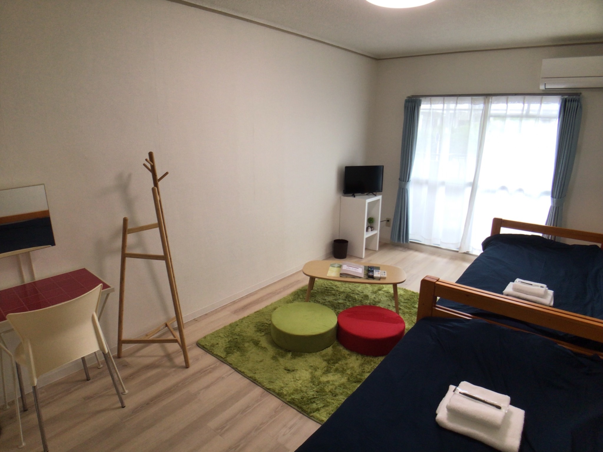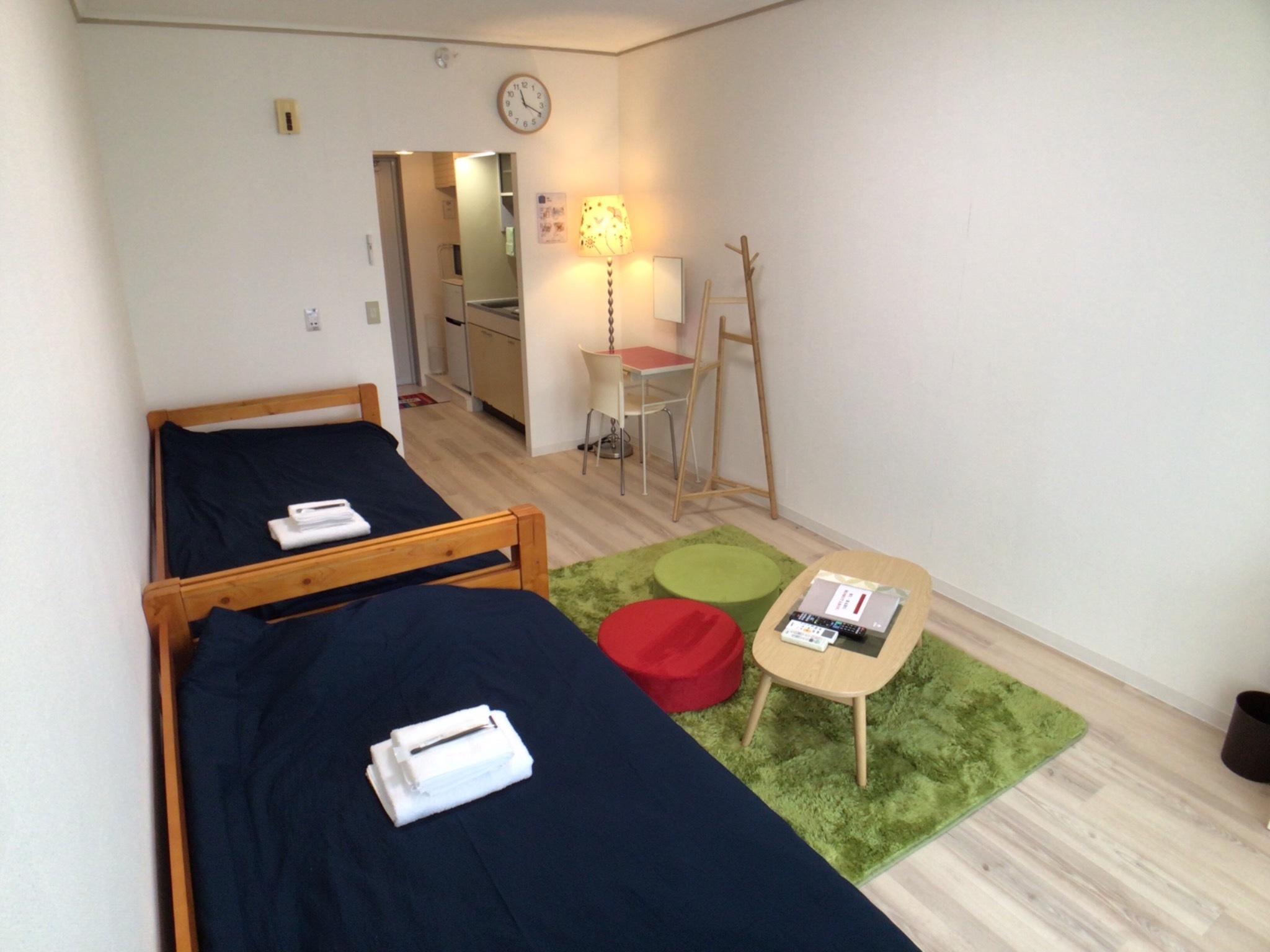 テレビ、インターネット接続(無線LAN形式)、ドライヤー、アイロン、石鹸(固形)、シャンプー、ハミガキセット