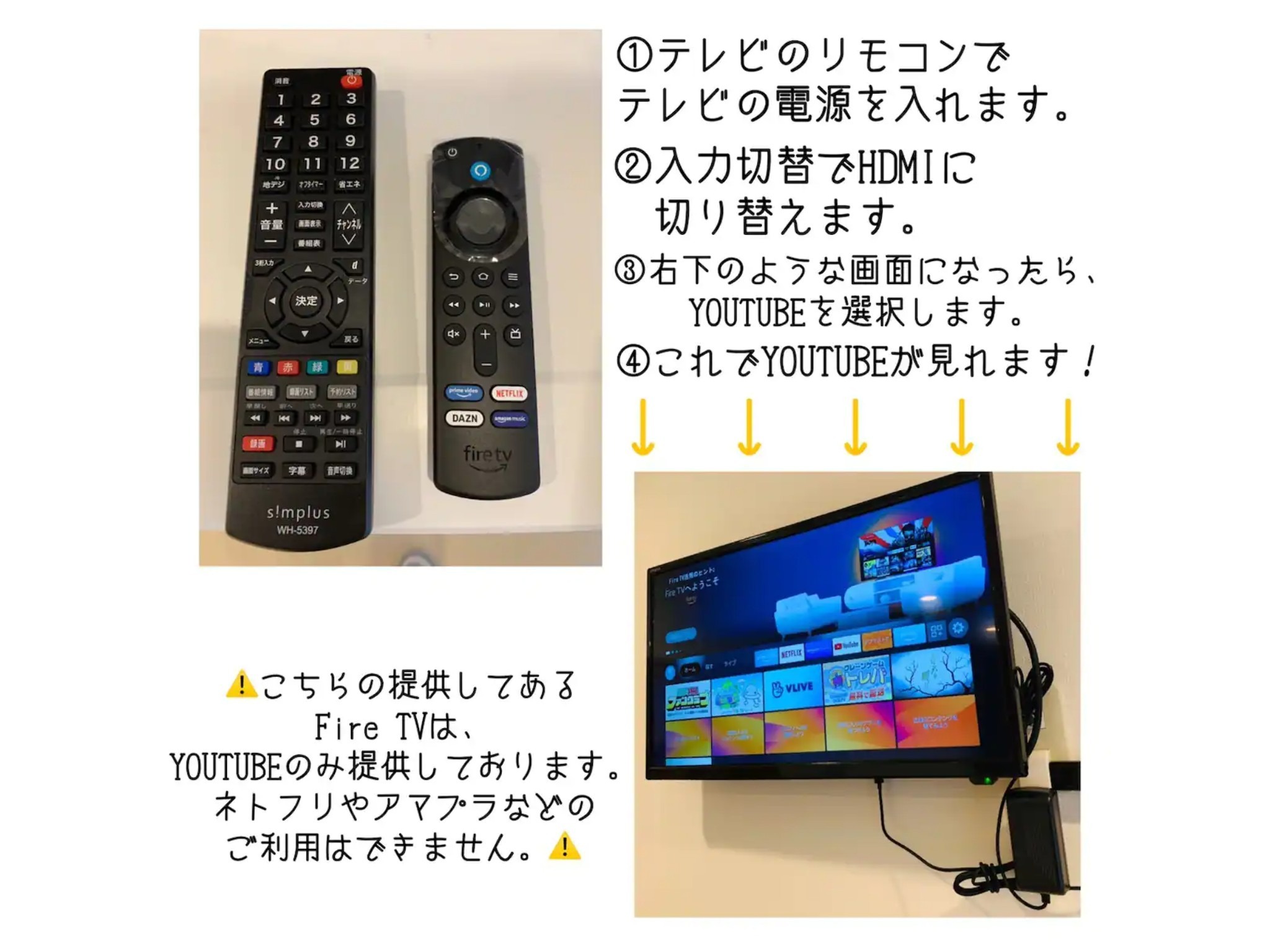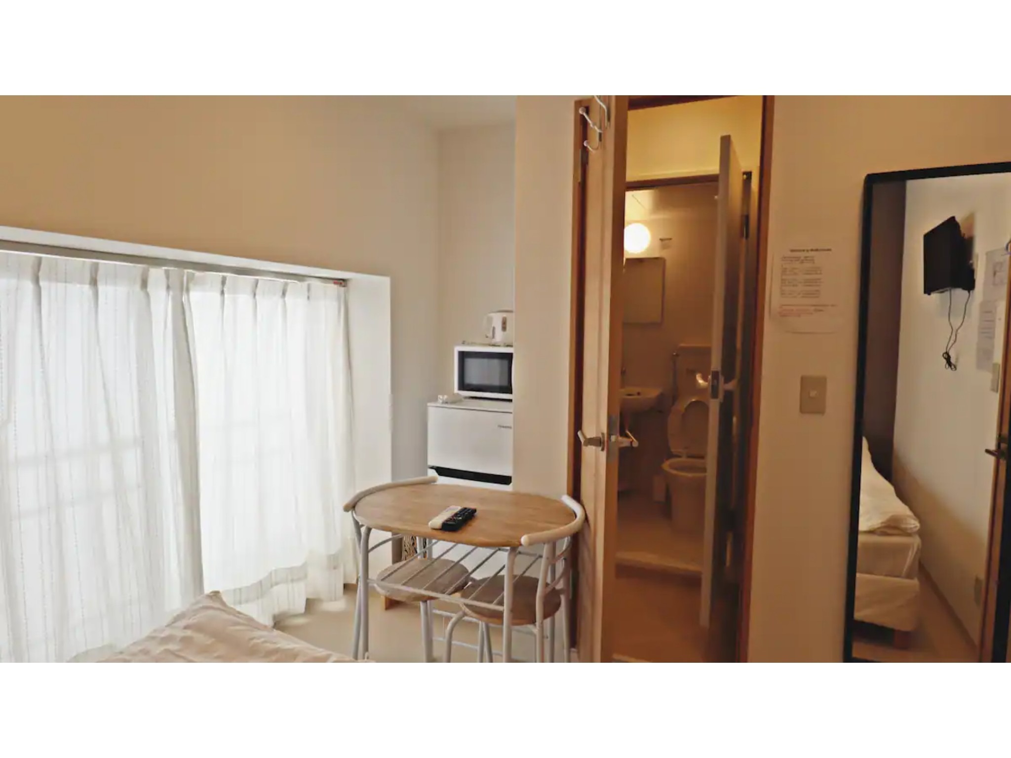 テレビ、ケーブルTV、インターネット接続(無線LAN形式)、冷蔵庫、ドライヤー、石鹸(固形)、シャンプー