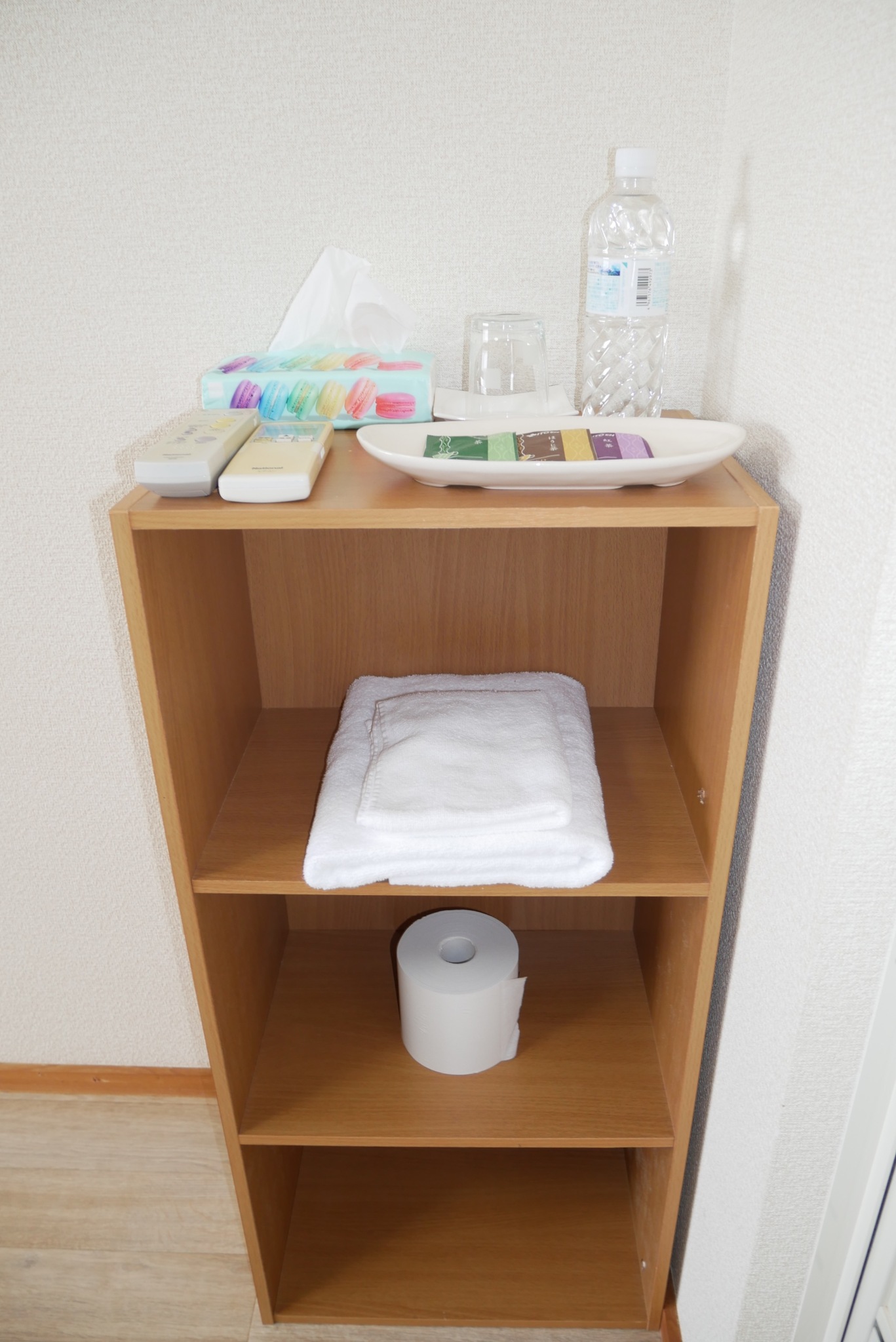 テレビ、インターネット接続(無線LAN形式)、冷蔵庫、ドライヤー、石鹸(固形)、シャンプー、ハミガキセット