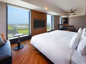 駅からとても近くアクセスはとてもいいです。\掃除も隅々まで行き届いていて、心地よく滞在することができました。\廊下が滑走路と同じ柄になっていたり、空港に近いというのをとても感じるデザインでした。窓から飛行機も見えるので子連れでも楽しめると思います。\空港への無料送迎もありますが、朝の時間にもう少し本数が多いと便利だと感じました。