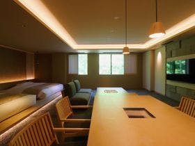 昨年6月にオープンしたてのホテル。企業の保養所を改装した、全室スイートの7室。7室全てに温泉浴室付。101号と102号室には、サウナ付です。今回宿泊したのは、101号室、サウナ付です。サウナ室は、大人4人がゆったり入れる広さで、セルフロウリュあり。露天風呂も大きく、夫婦2人でも余裕のある広さ。露天風呂には、椅子もあり、サウナ後ととのえます。シャワー室もあり、脱衣所には冷蔵庫が!お水とポカリが2本づ...