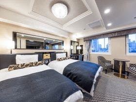 テレビ、有料ビデオ、有線、電話、インターネット接続(LAN形式)、インターネット接続(無線LAN形式)、湯沸かしポット、お茶セット、冷蔵庫、ドライヤー、ズボンプレッサー(貸出)、加湿器(貸出)、洗浄機付トイレ、石鹸(液体)、ボディーソープ、シャンプー、コンディショナー、ハミガキセット、カミソリ、シャワーキャップ、くし、タオル、バスタオル、浴衣、スリッパ