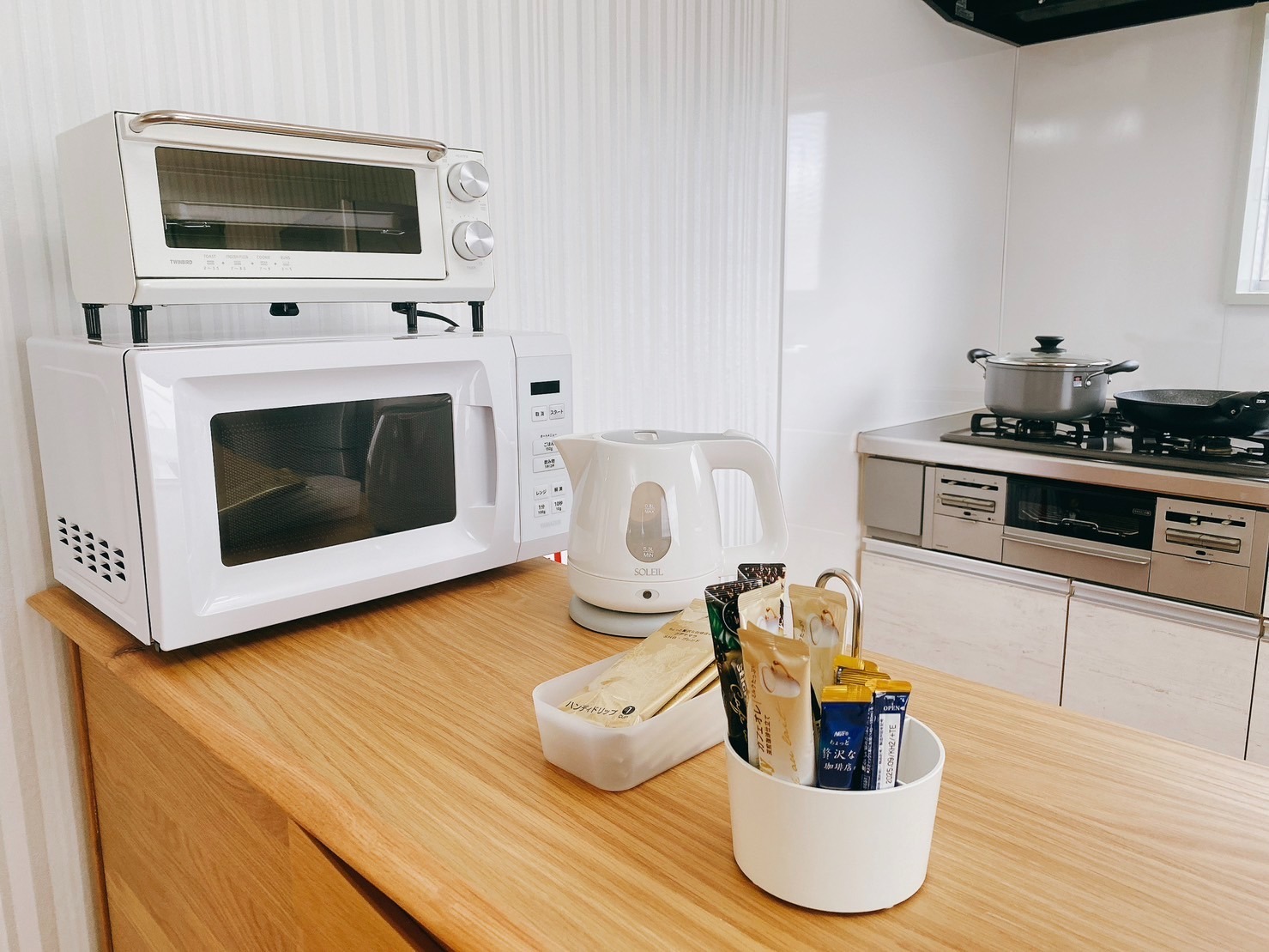 テレビ、インターネット接続(無線LAN形式)、冷蔵庫、ドライヤー、石鹸(固形)、シャンプー、ハミガキセット