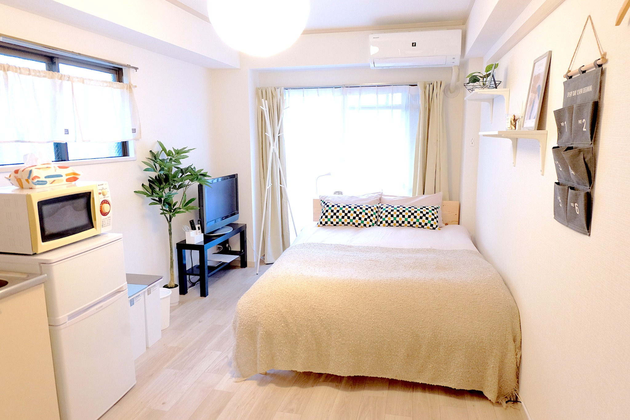 テレビ、インターネット接続(無線LAN形式)、冷蔵庫、ドライヤー、アイロン、石鹸(固形)、シャンプー