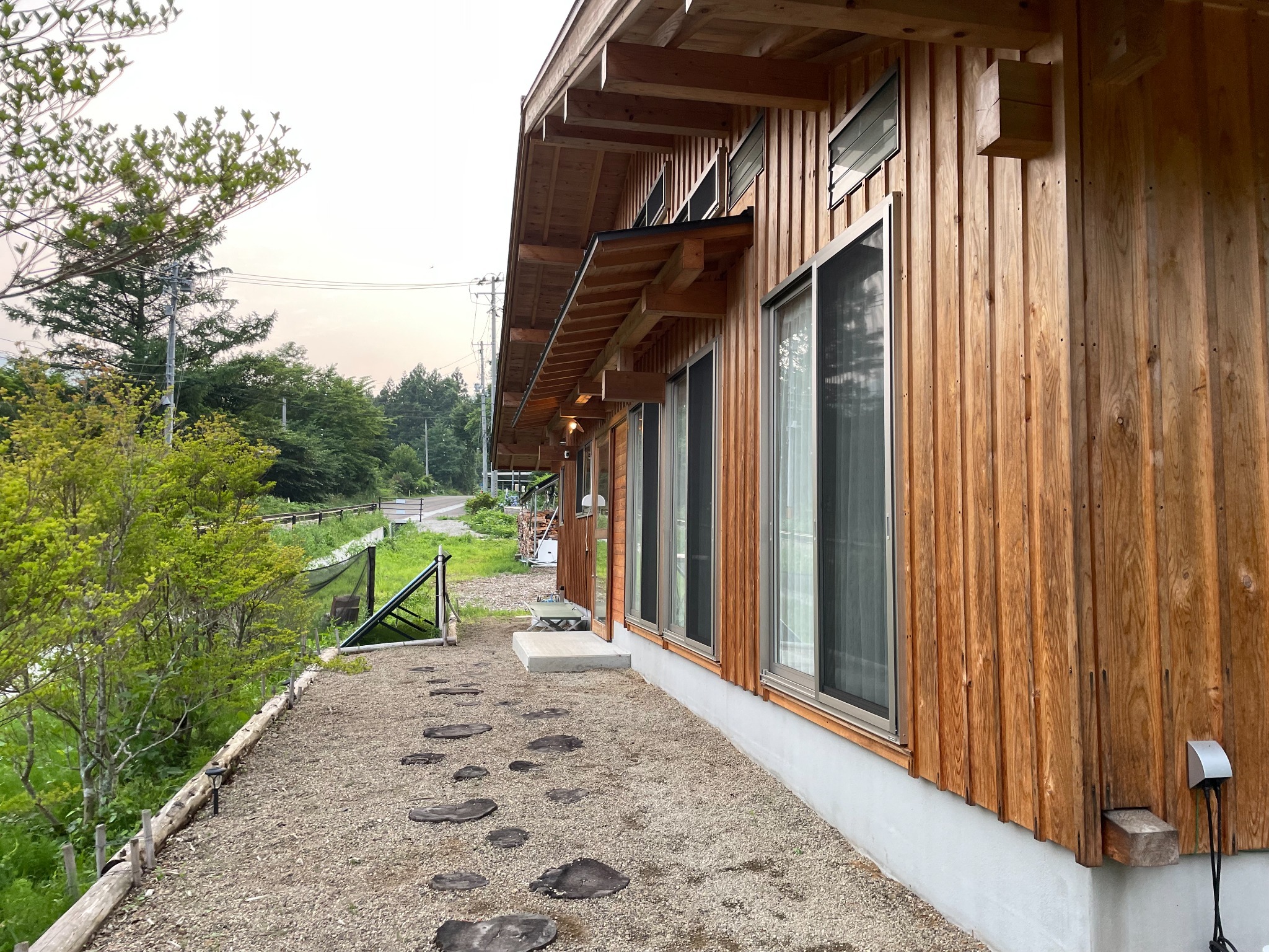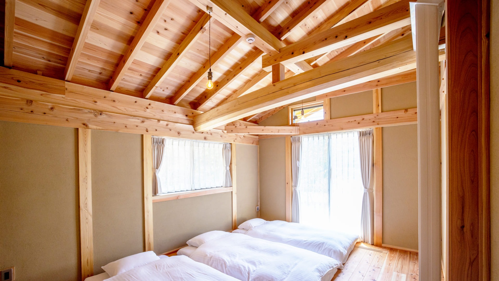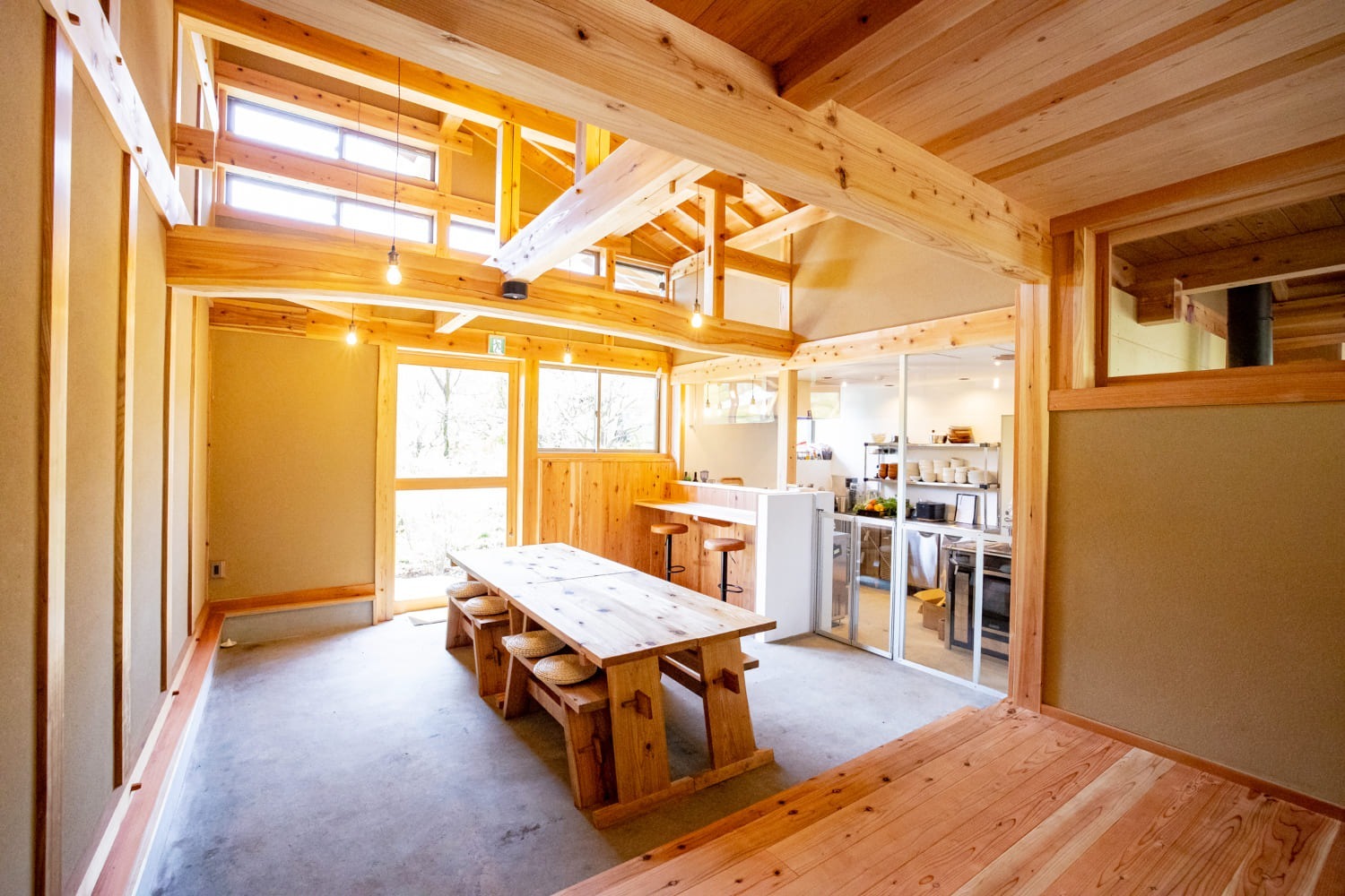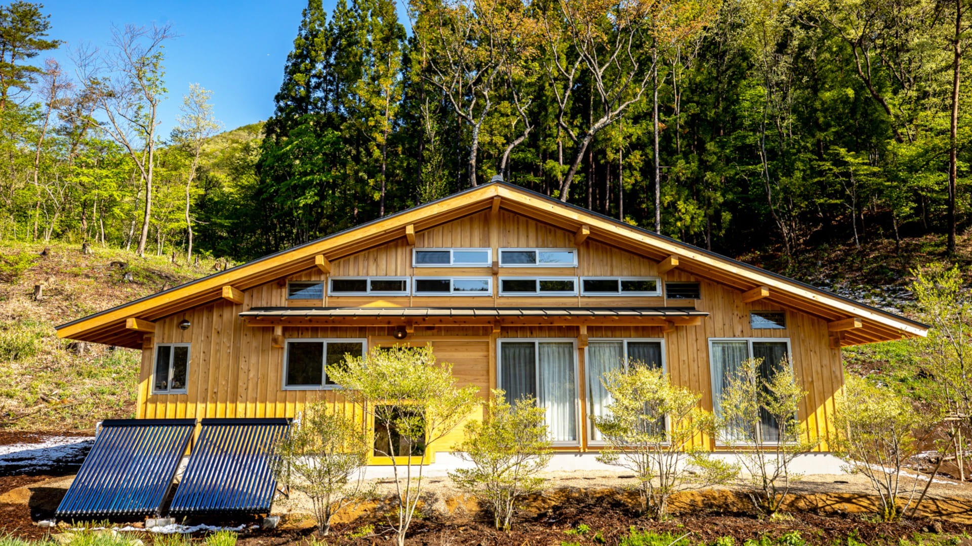 Ecommodation百のやどは、日本の伝統的な技術と現代的な快適さを融合させた木造建築です。