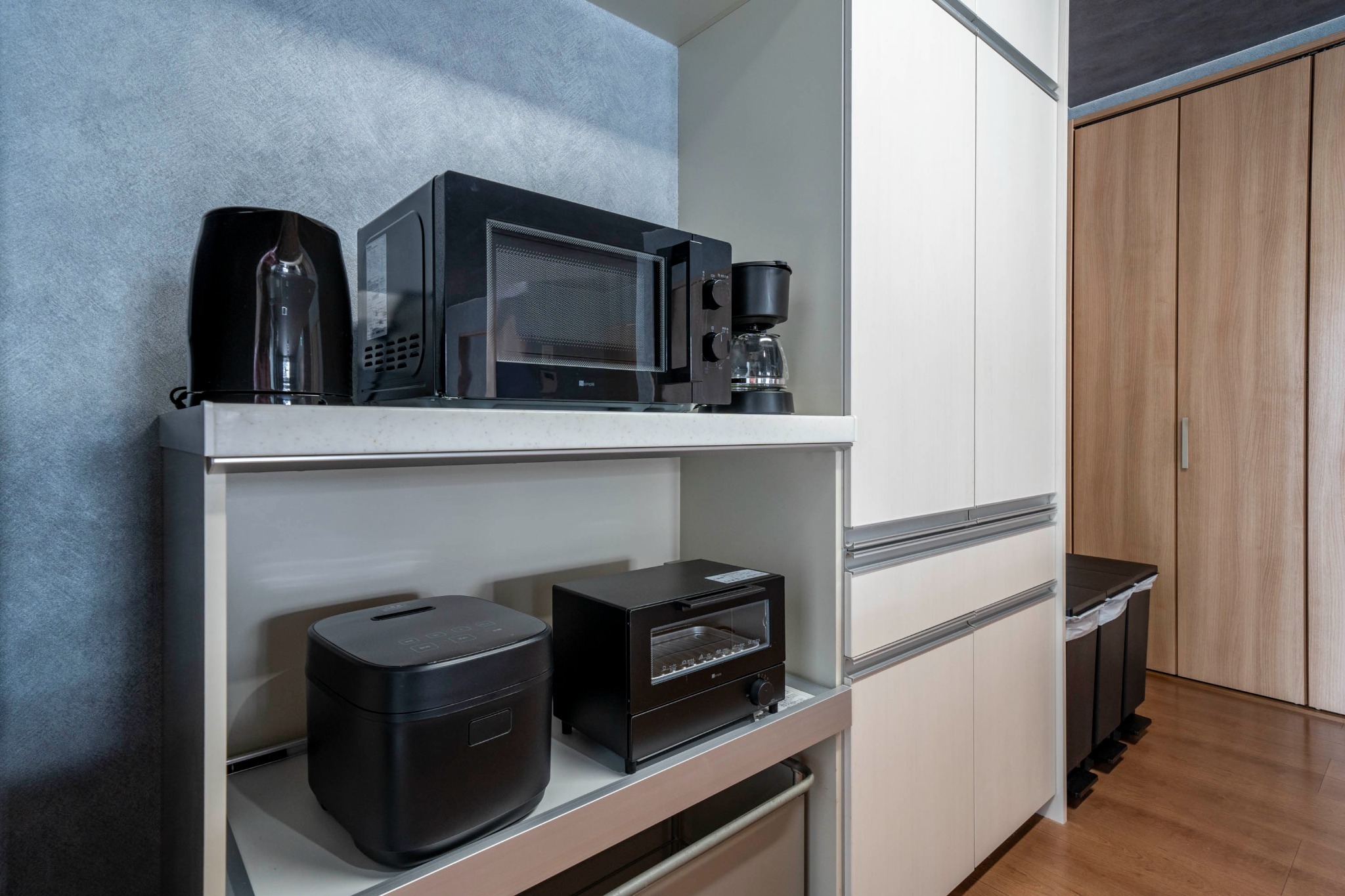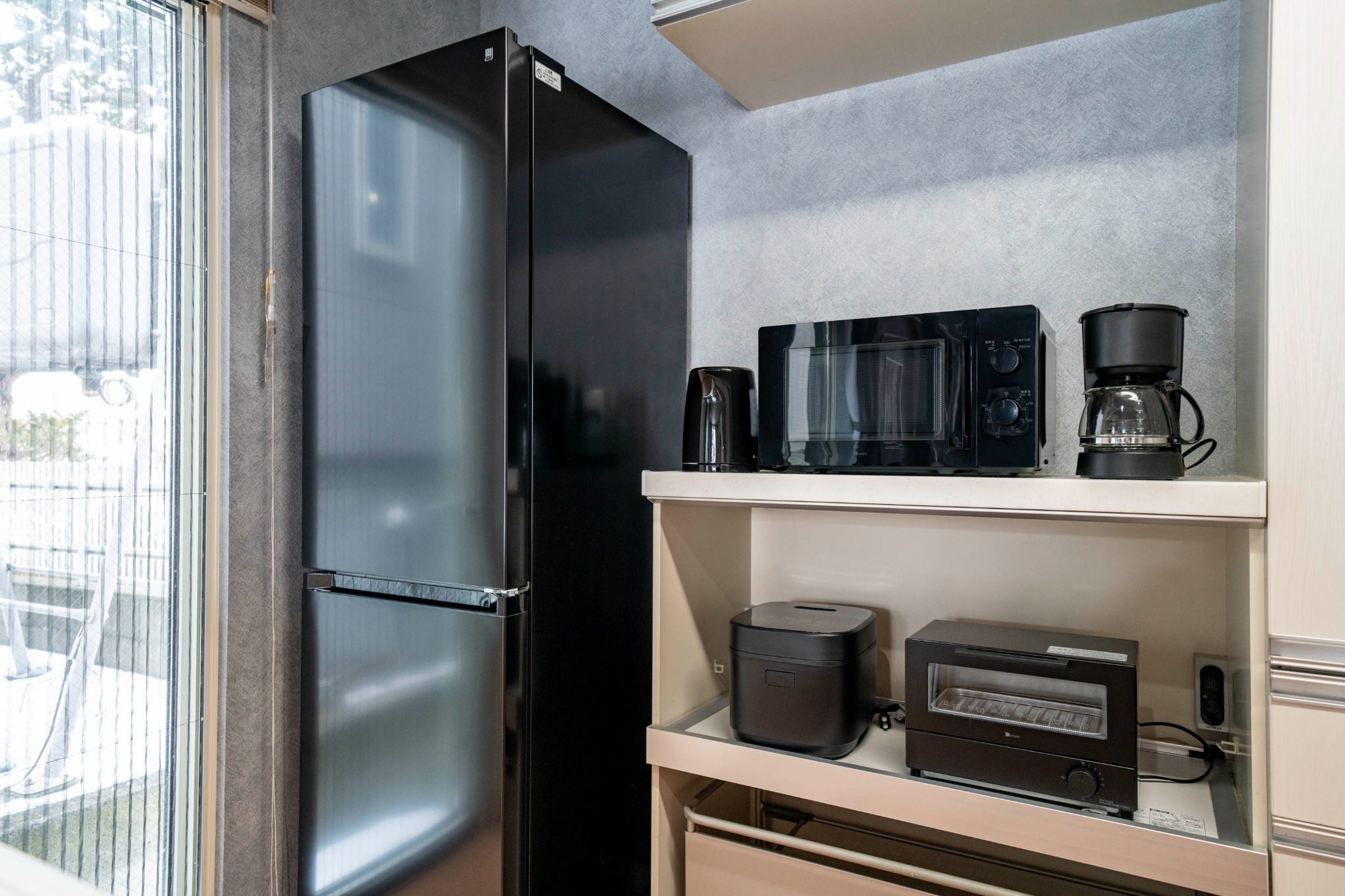 テレビ、インターネット接続(無線LAN形式)、冷蔵庫、ドライヤー、アイロン、シャンプー、ハミガキセット