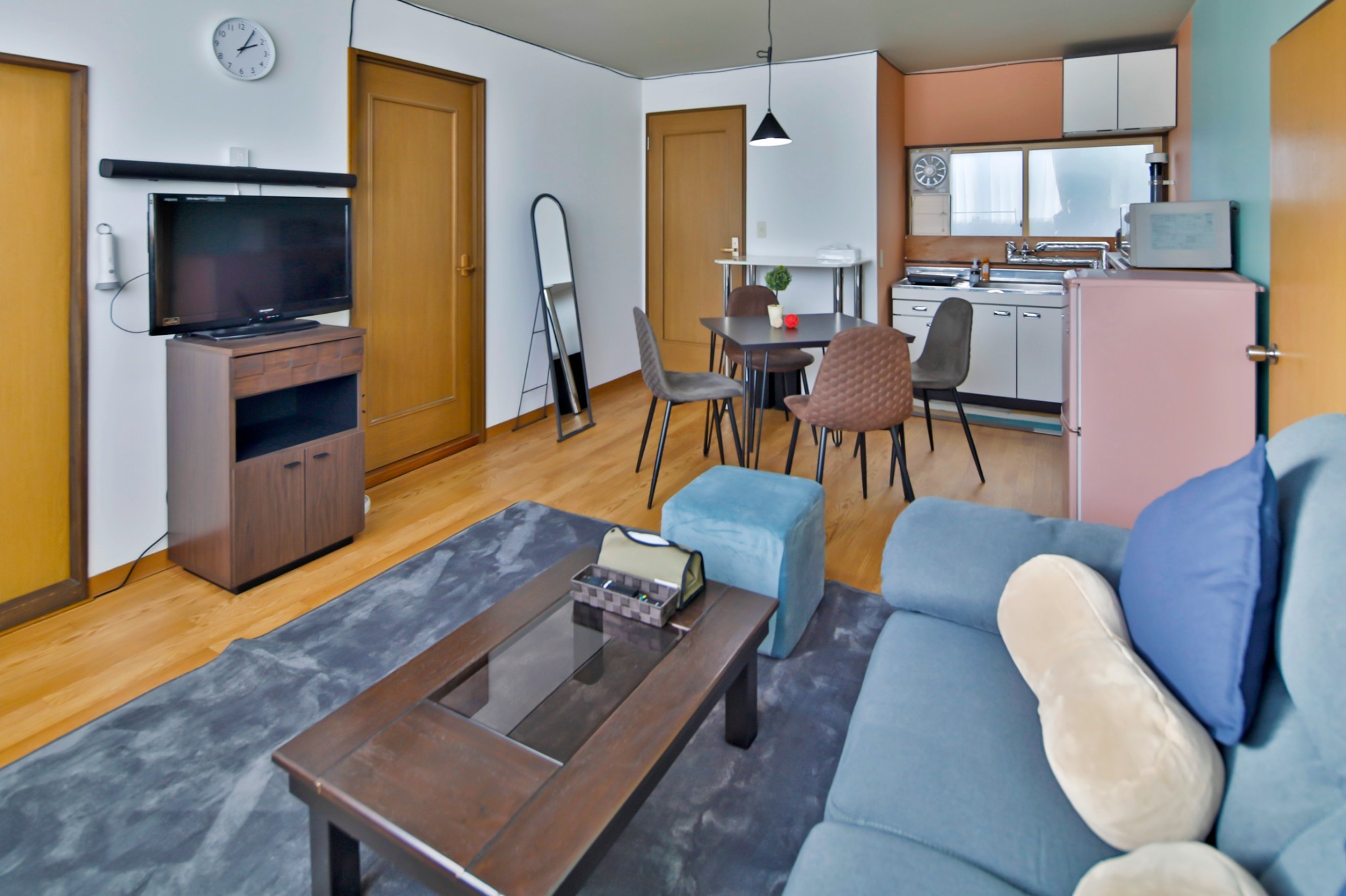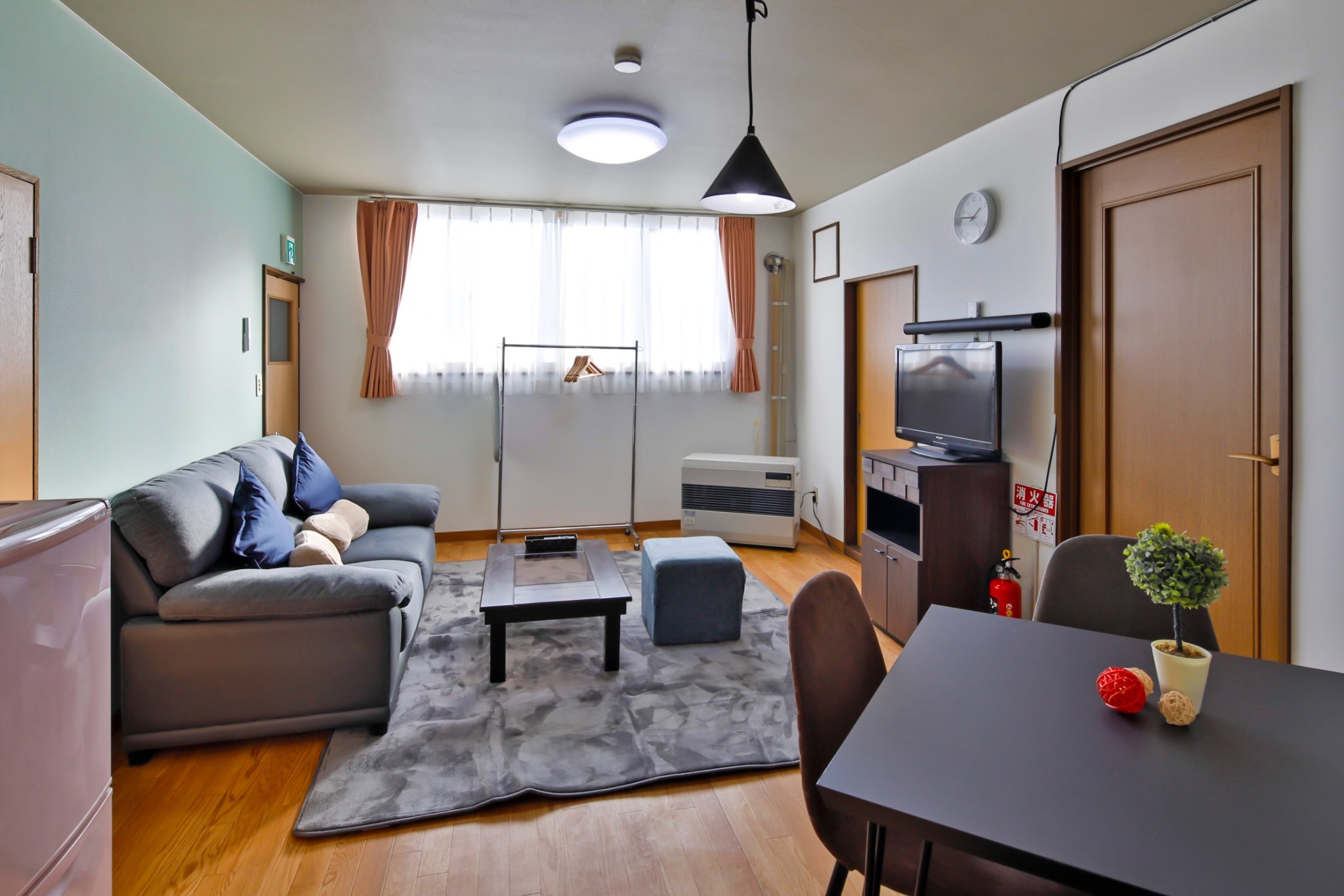 テレビ、インターネット接続(無線LAN形式)、冷蔵庫、ドライヤー、アイロン、シャンプー、ハミガキセット