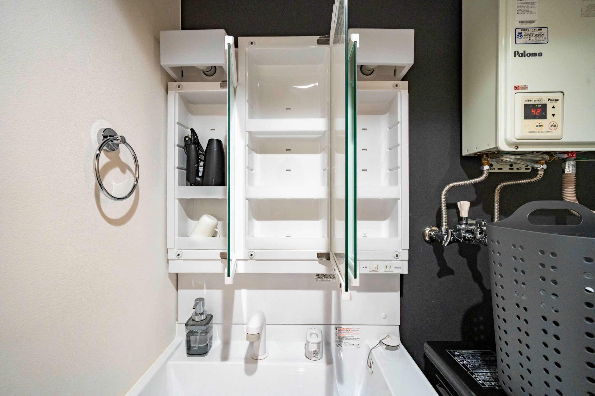 テレビ、インターネット接続(無線LAN形式)、冷蔵庫、ドライヤー、アイロン、石鹸(固形)、シャンプー、ハミガキセット