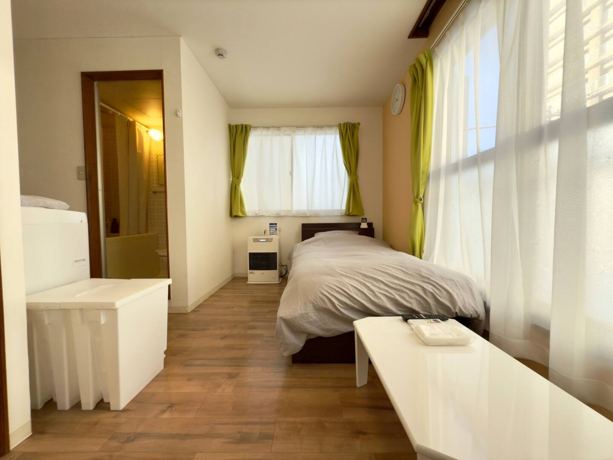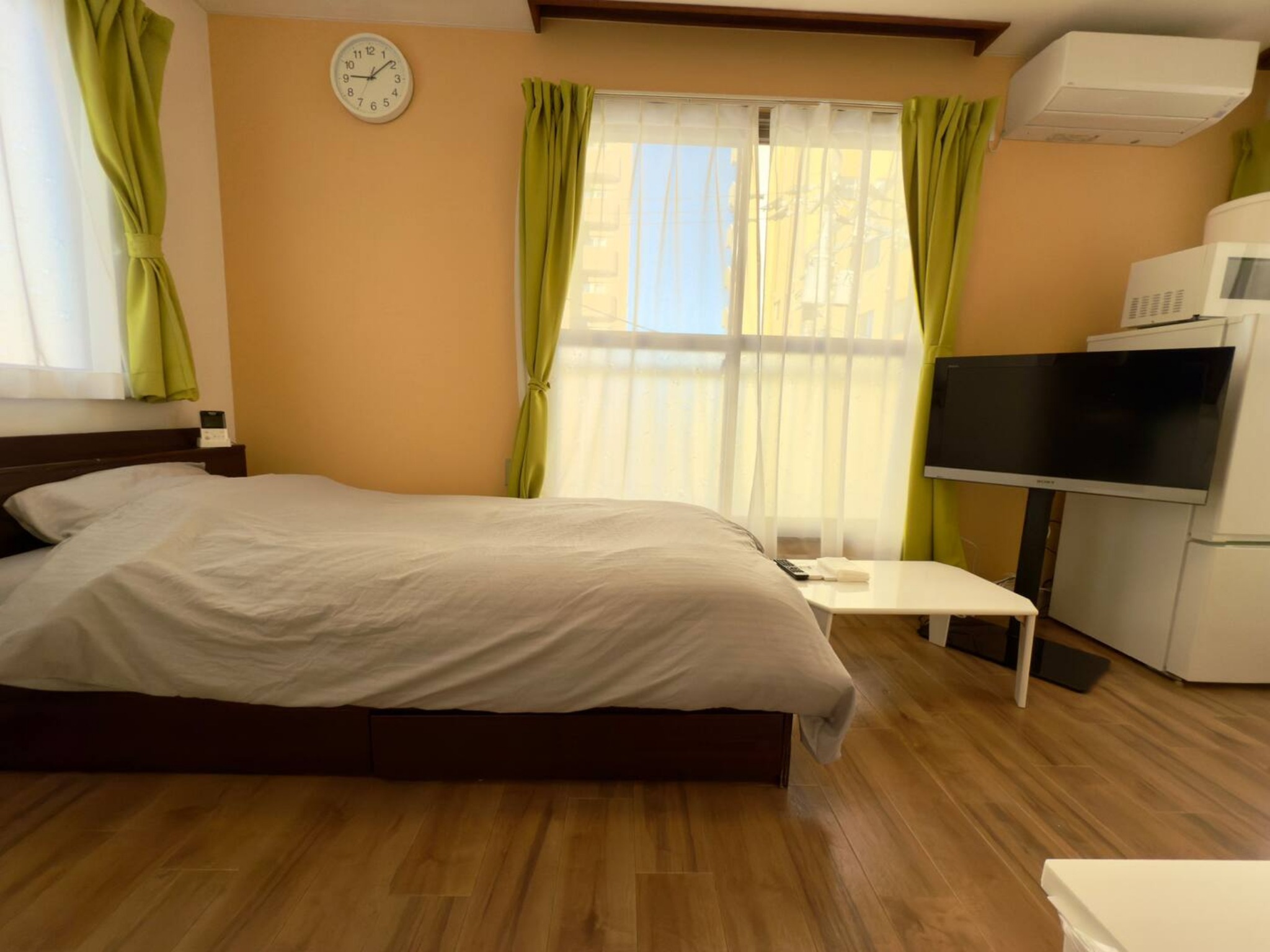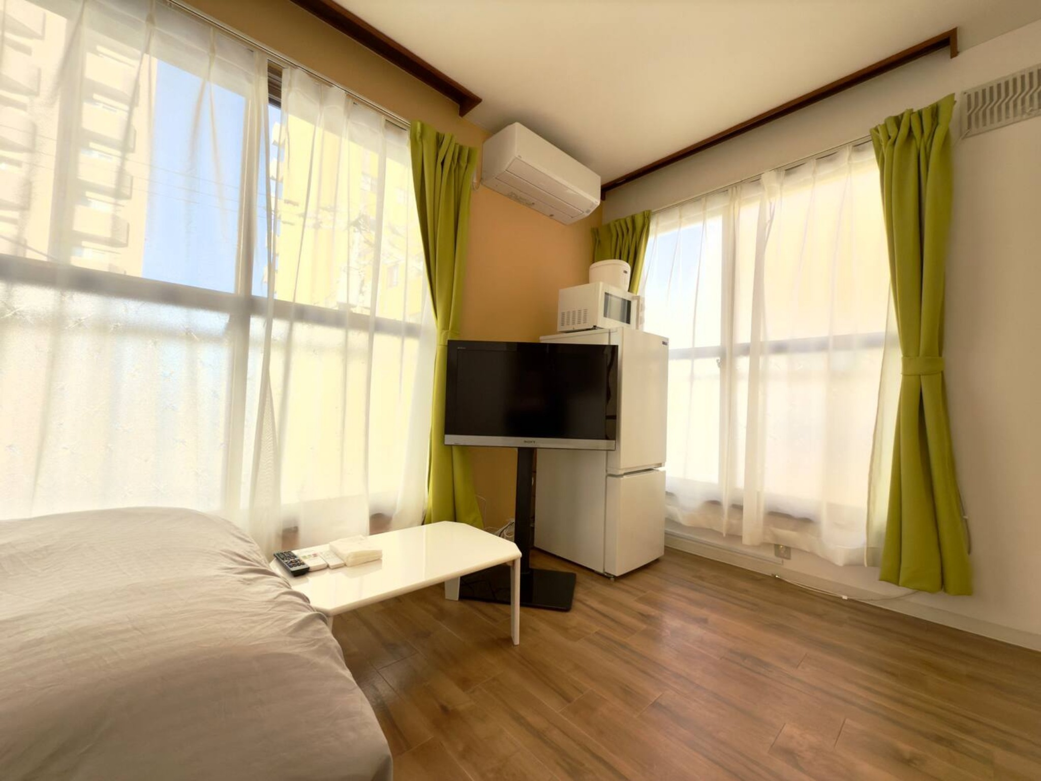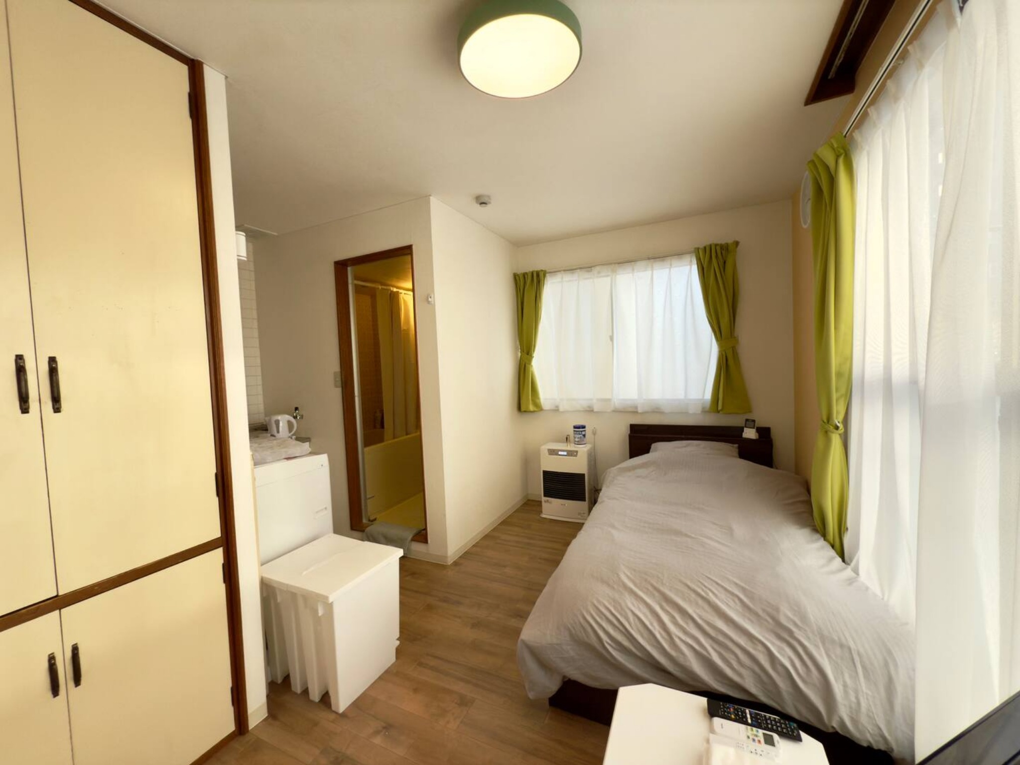 テレビ、インターネット接続(無線LAN形式)、冷蔵庫、ドライヤー、アイロン、石鹸(固形)、シャンプー