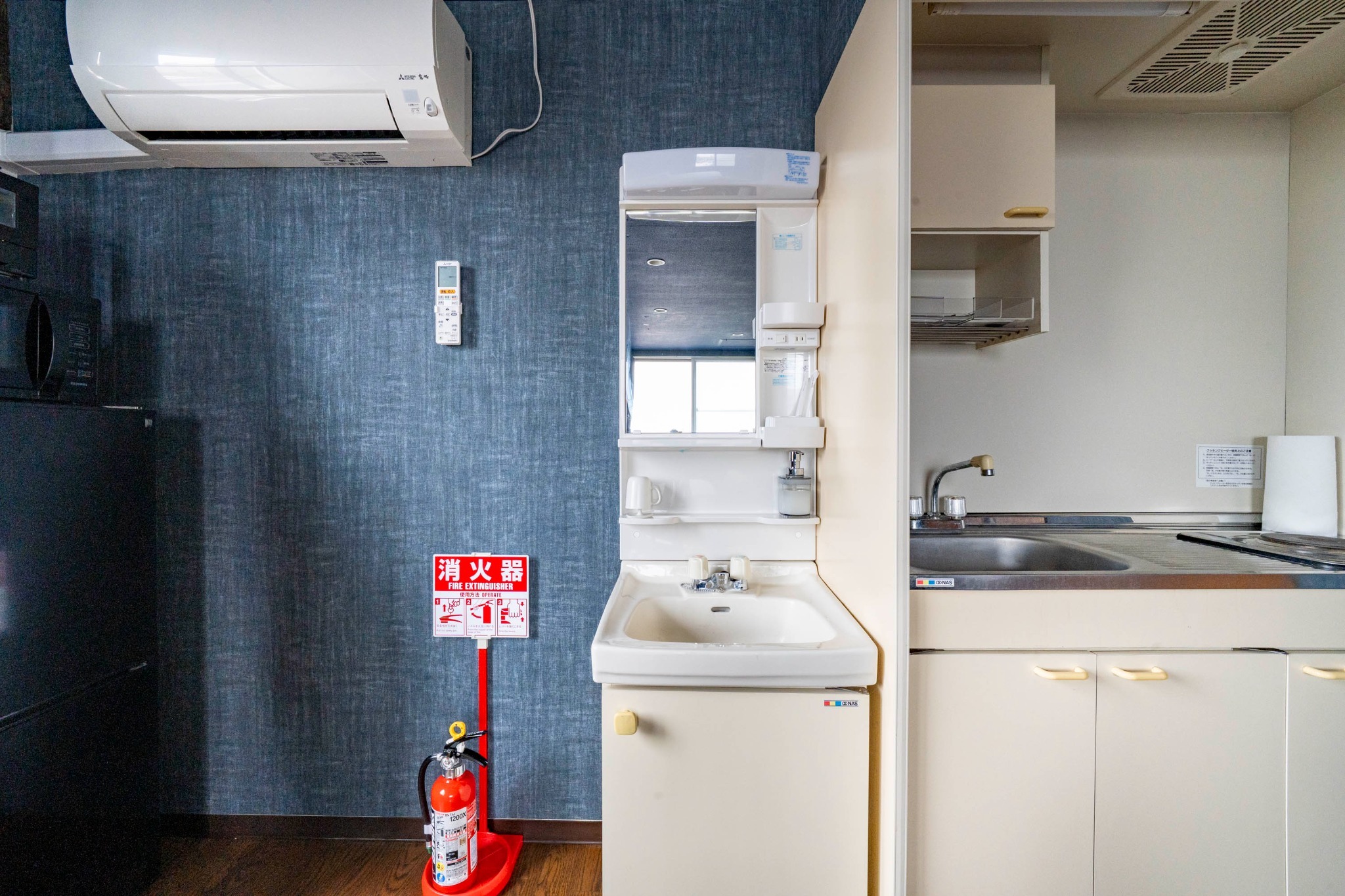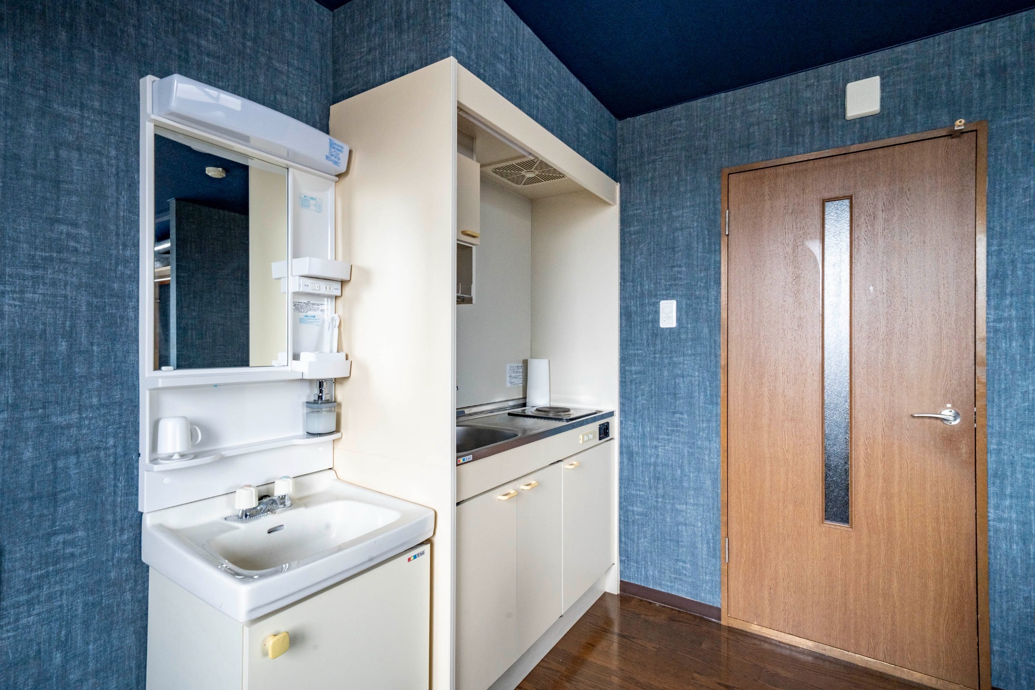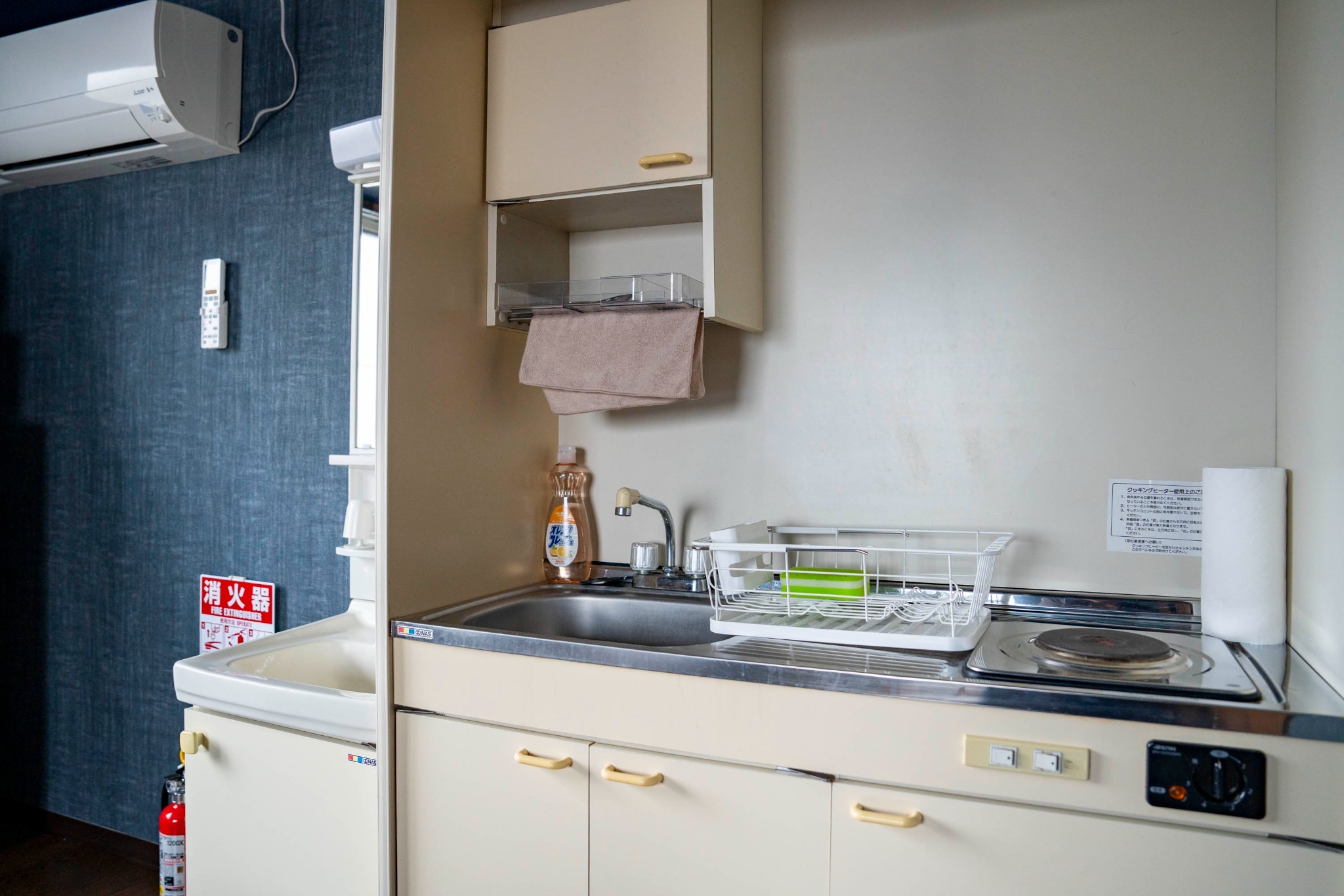 テレビ、インターネット接続(無線LAN形式)、冷蔵庫、ドライヤー、アイロン、石鹸(固形)、シャンプー、ハミガキセット