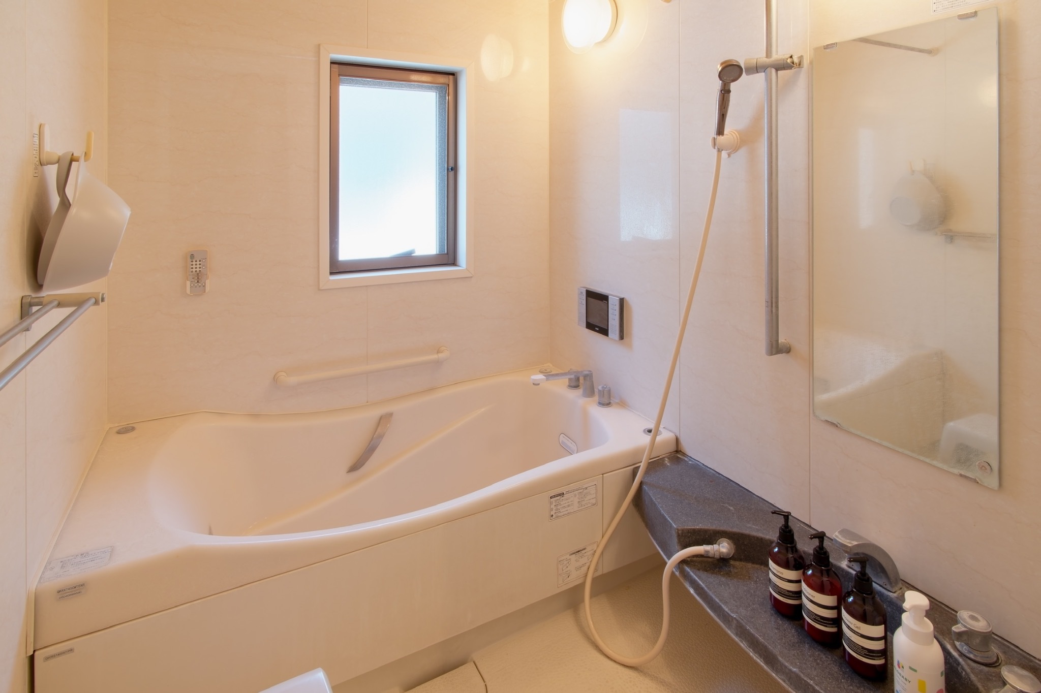 テレビ、インターネット接続(無線LAN形式)、冷蔵庫、ドライヤー、石鹸(液体)、シャンプー、ハミガキセット