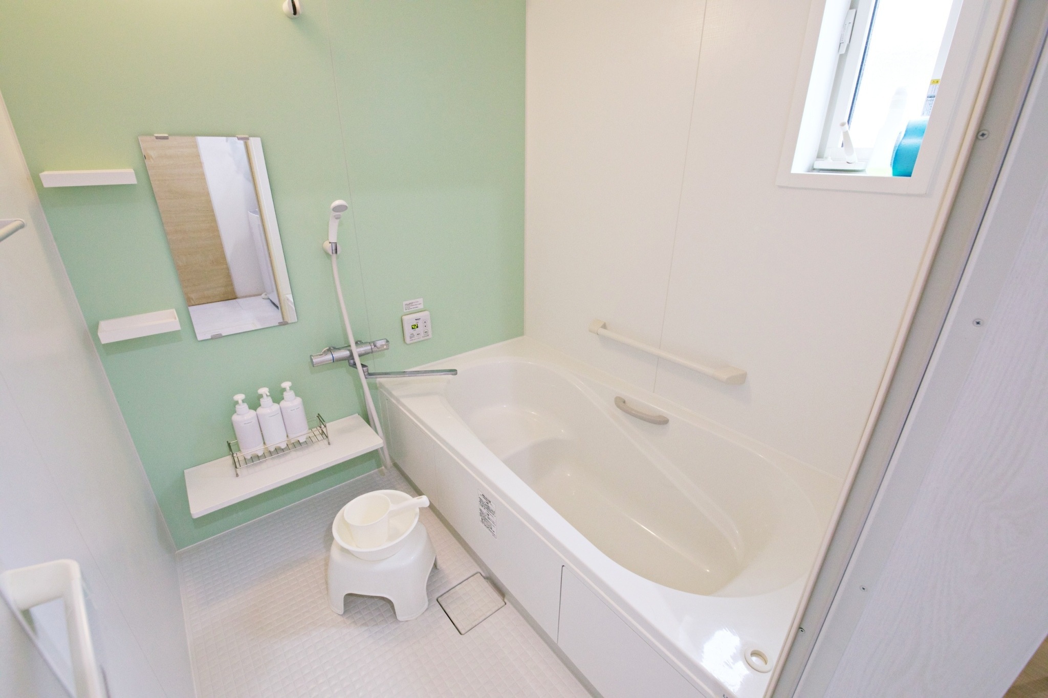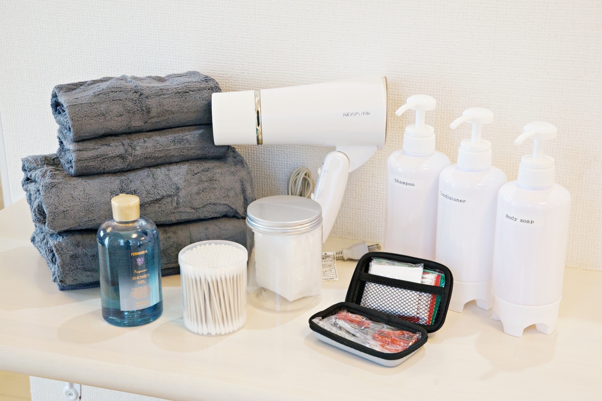 テレビ、インターネット接続(無線LAN形式)、冷蔵庫、ドライヤー、アイロン、石鹸(固形)、シャンプー