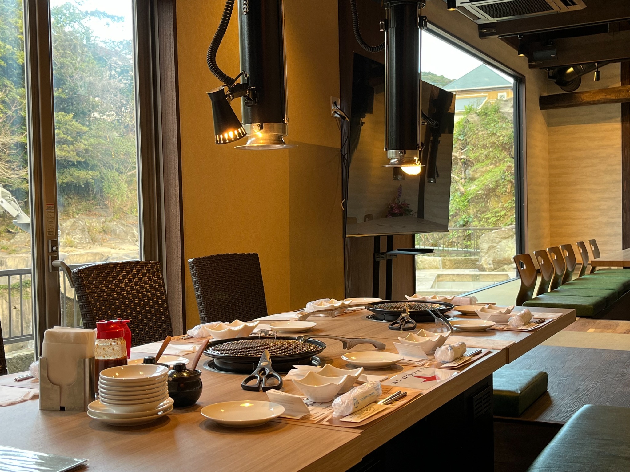 目の前の滝と焼肉と酒と-プライベート空間