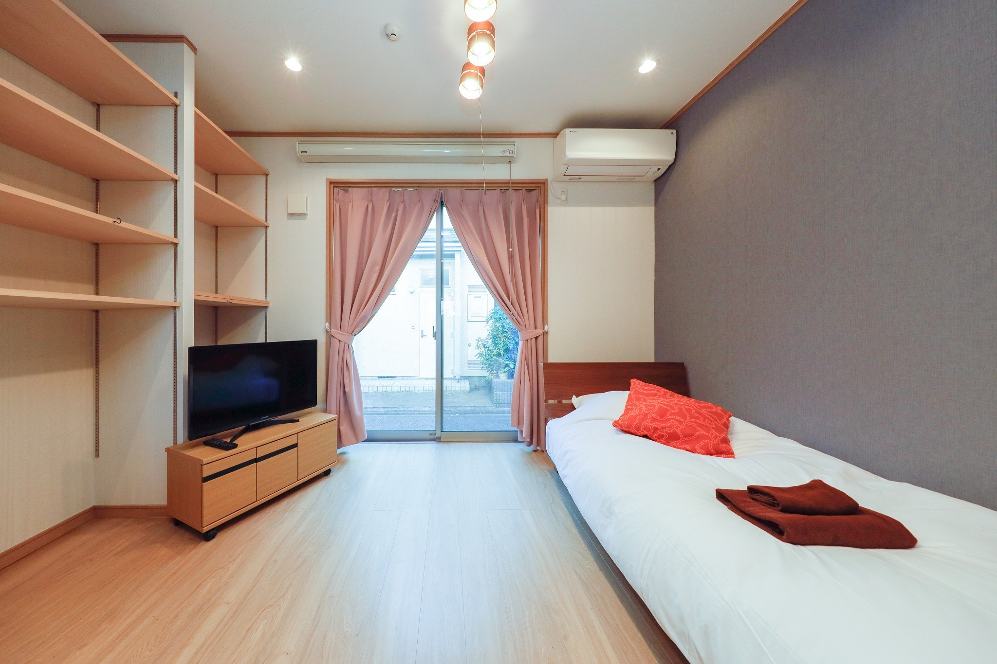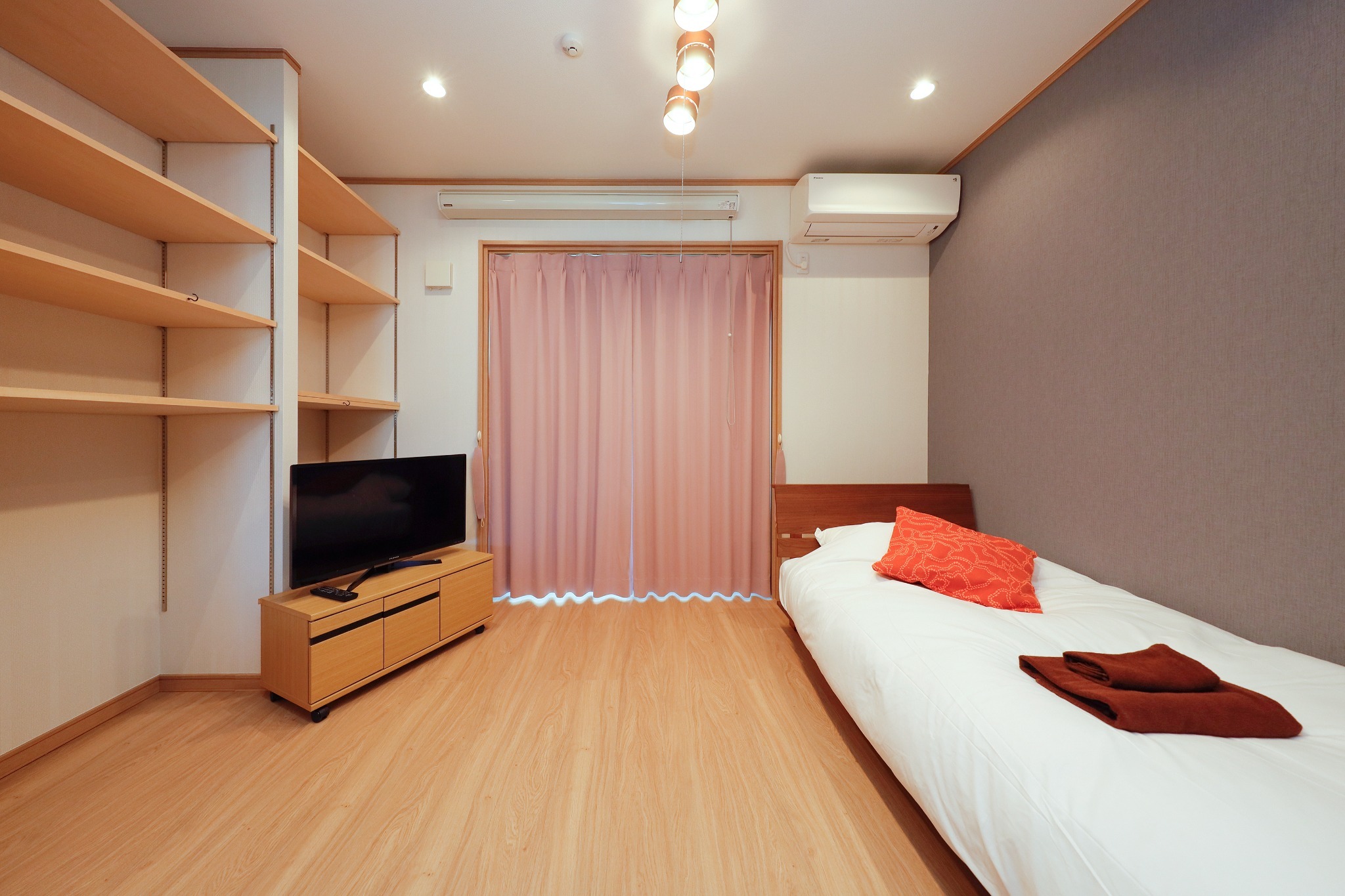 テレビ、インターネット接続(無線LAN形式)、冷蔵庫、ドライヤー、石鹸(固形)、シャンプー