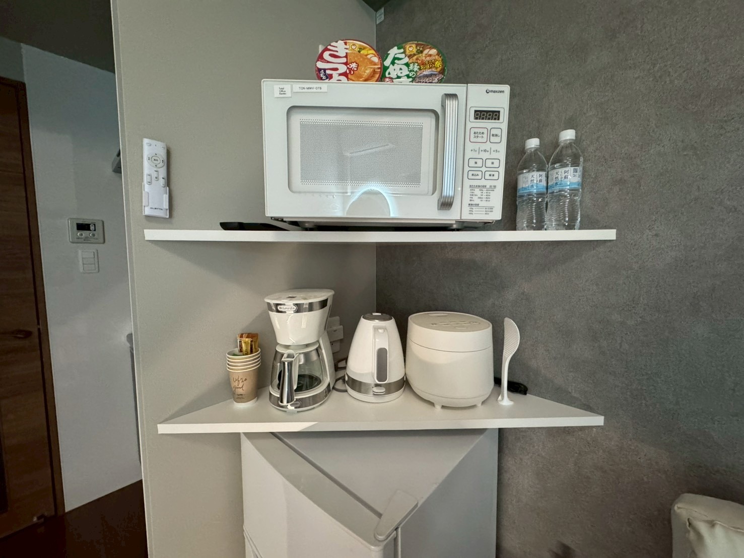 テレビ、インターネット接続(LAN形式)、インターネット接続(無線LAN形式)、冷蔵庫、ドライヤー、石鹸(固形)、シャンプー、ハミガキセット