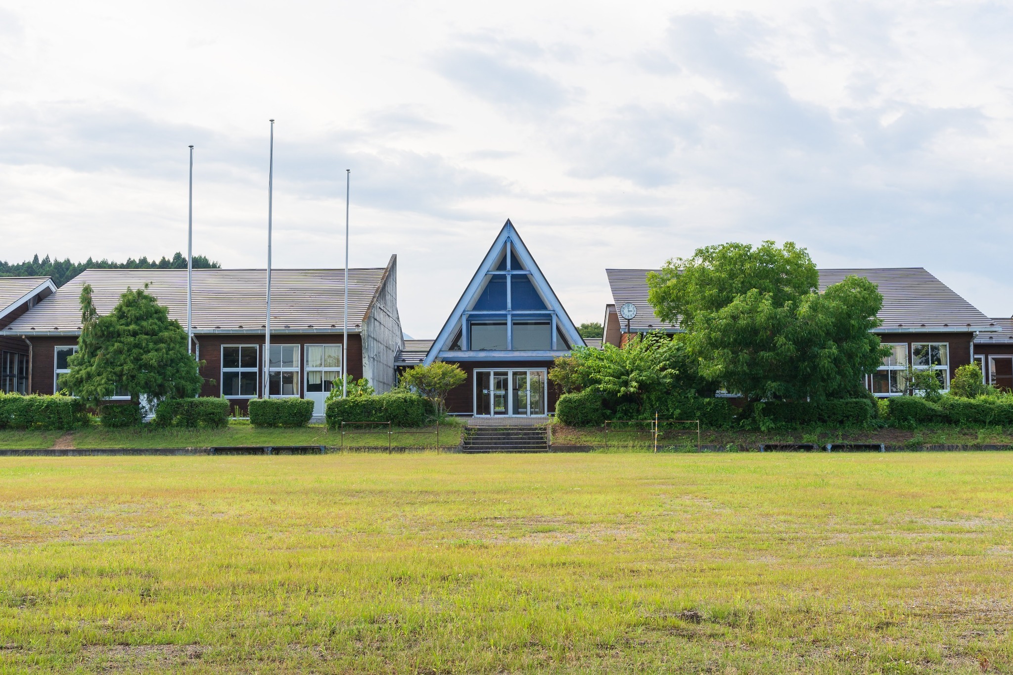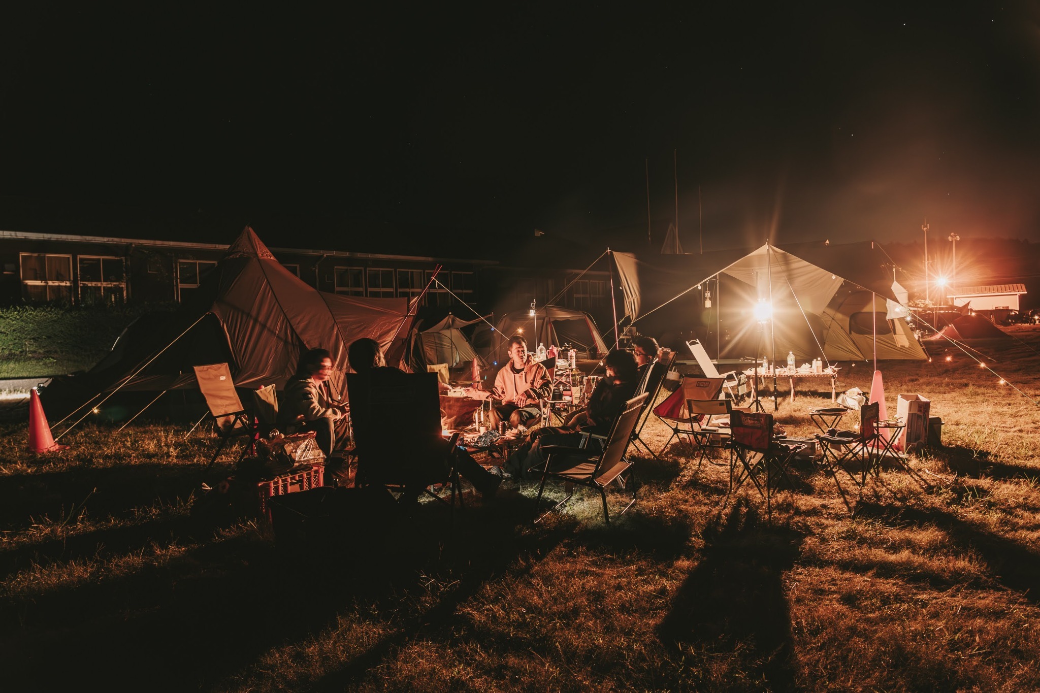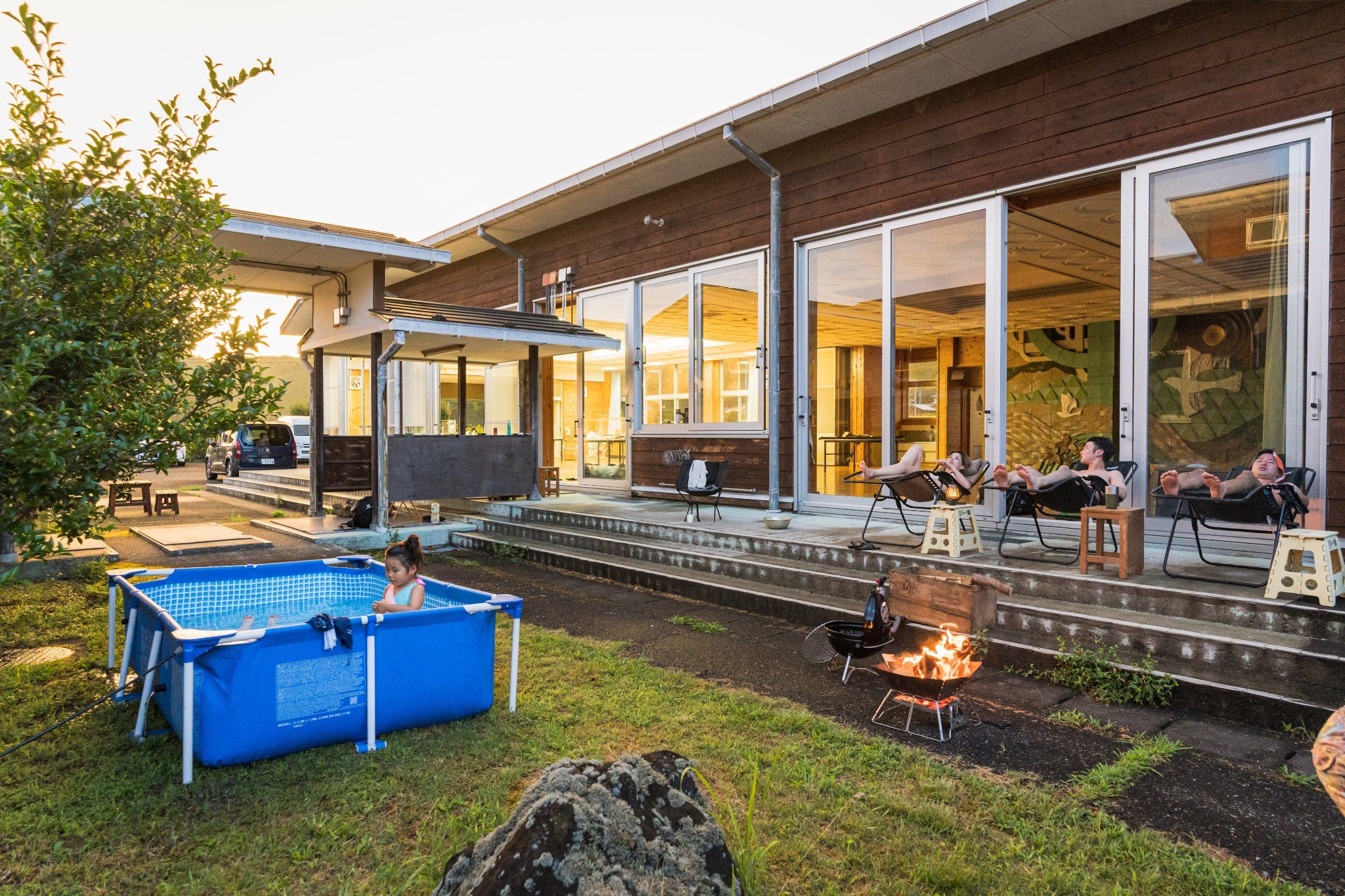 廃校リノベのキャンプ場。校庭で遊び、雨天は校舎で安心。ビール飲み放題、アクティビティも豊富。