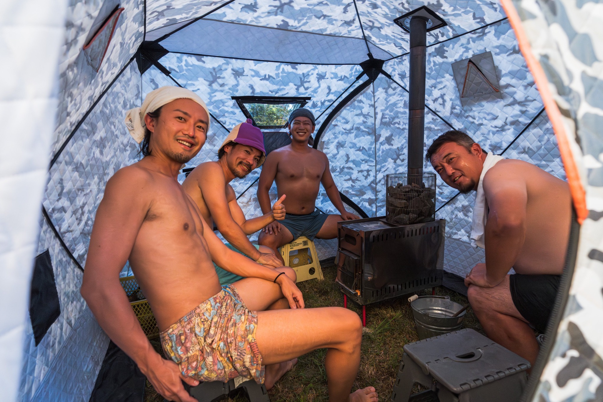 サウナ、自動販売機、バーベキューガーデン