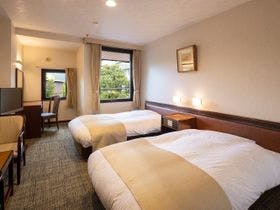テレビ、衛星放送(無料)、電話、湯沸かしポット、お茶セット、冷蔵庫、ドライヤー、ズボンプレッサー(貸出)、電気スタンド(貸出)、CDプレイヤ-(貸出)、加湿器(貸出)、個別空調、洗浄機付トイレ、ボディーソープ、シャンプー、コンディショナー、ハミガキセット、カミソリ、シャワーキャップ、くし、タオル、バスタオル、浴衣、スリッパ、金庫