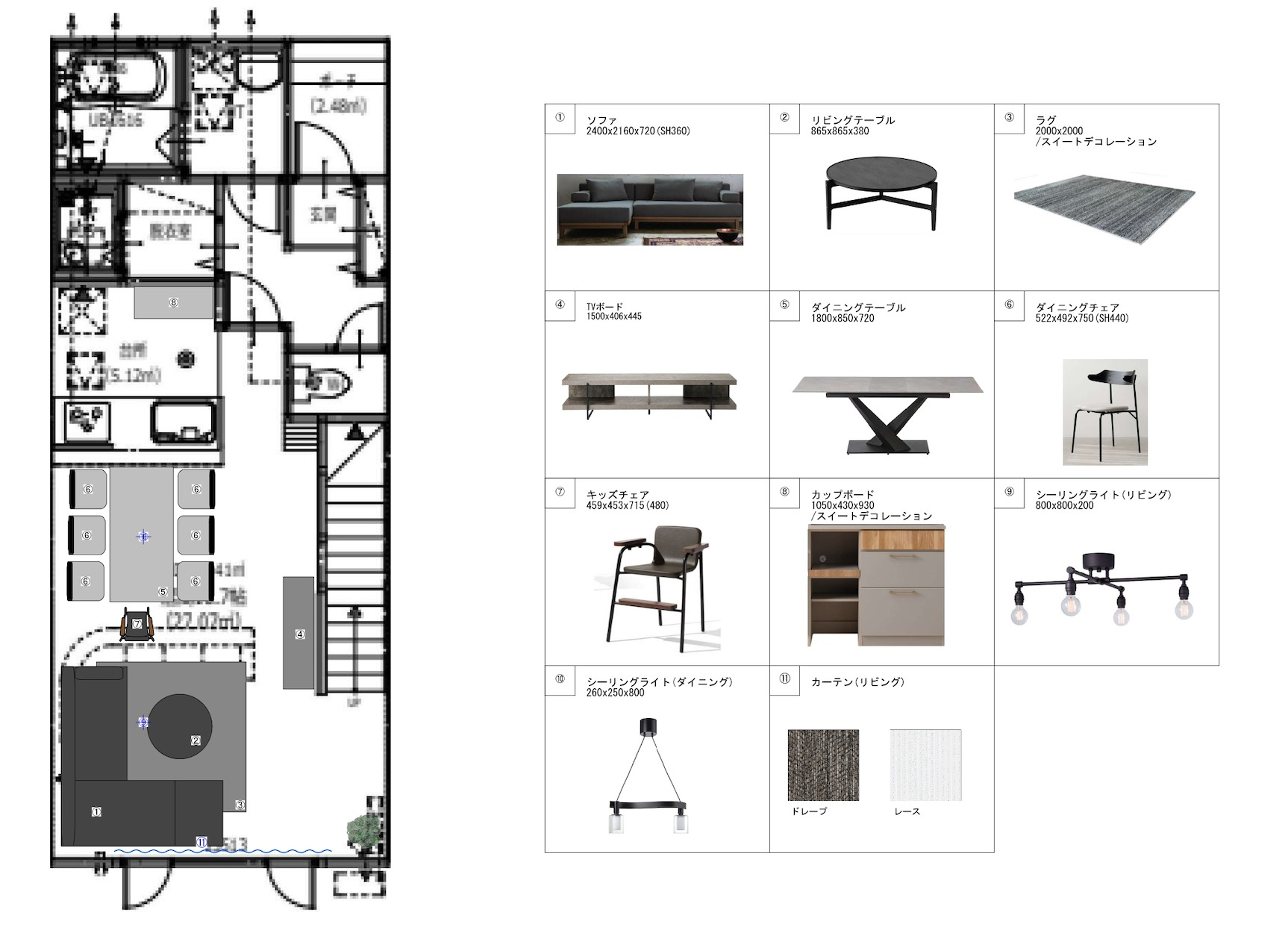 テレビ、インターネット接続(無線LAN形式)、冷蔵庫、ドライヤー、アイロン、石鹸(固形)、シャンプー、ハミガキセット