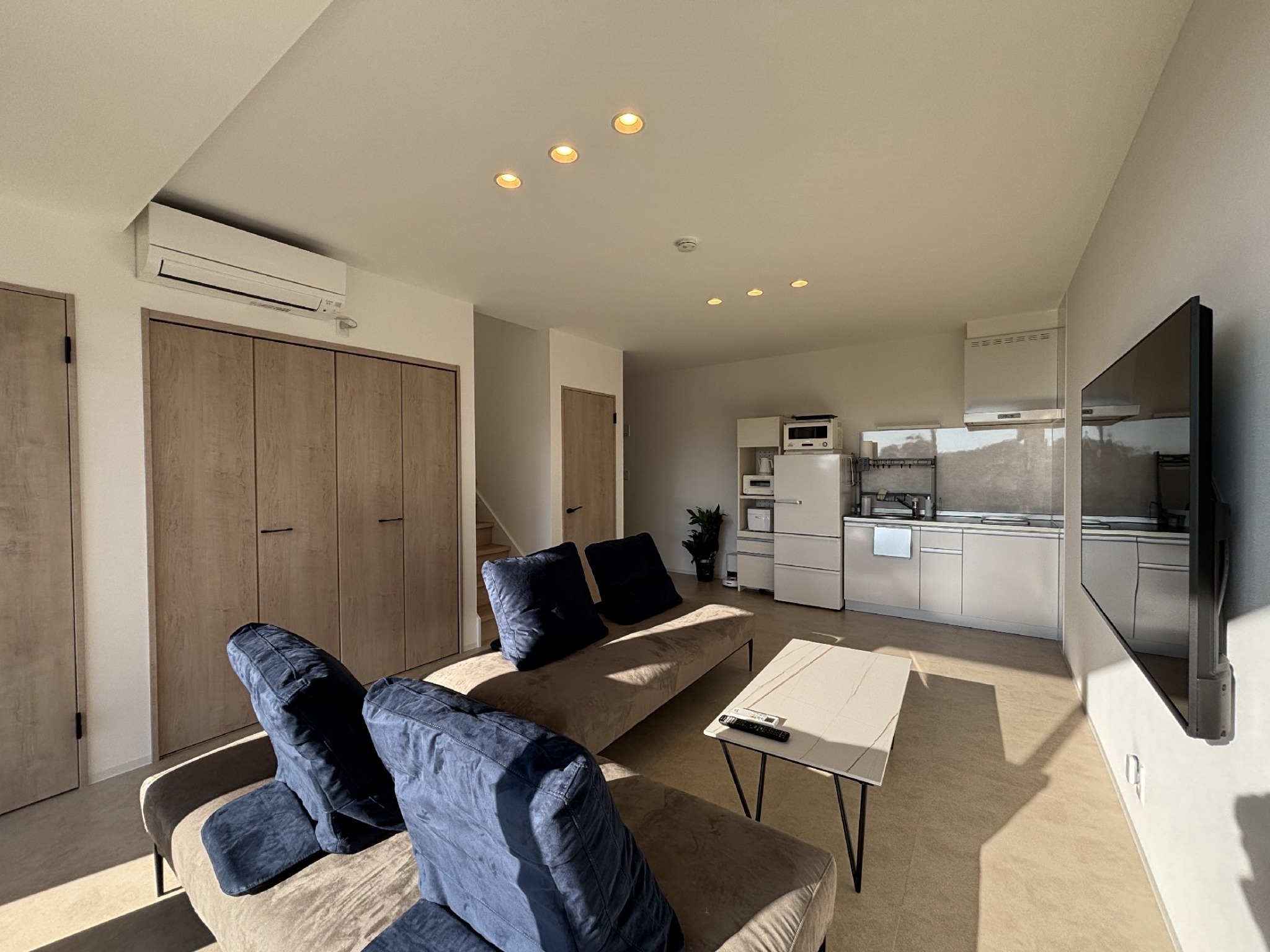 テレビ、インターネット接続(無線LAN形式)、冷蔵庫、ドライヤー、アイロン、石鹸(固形)、シャンプー、ハミガキセット