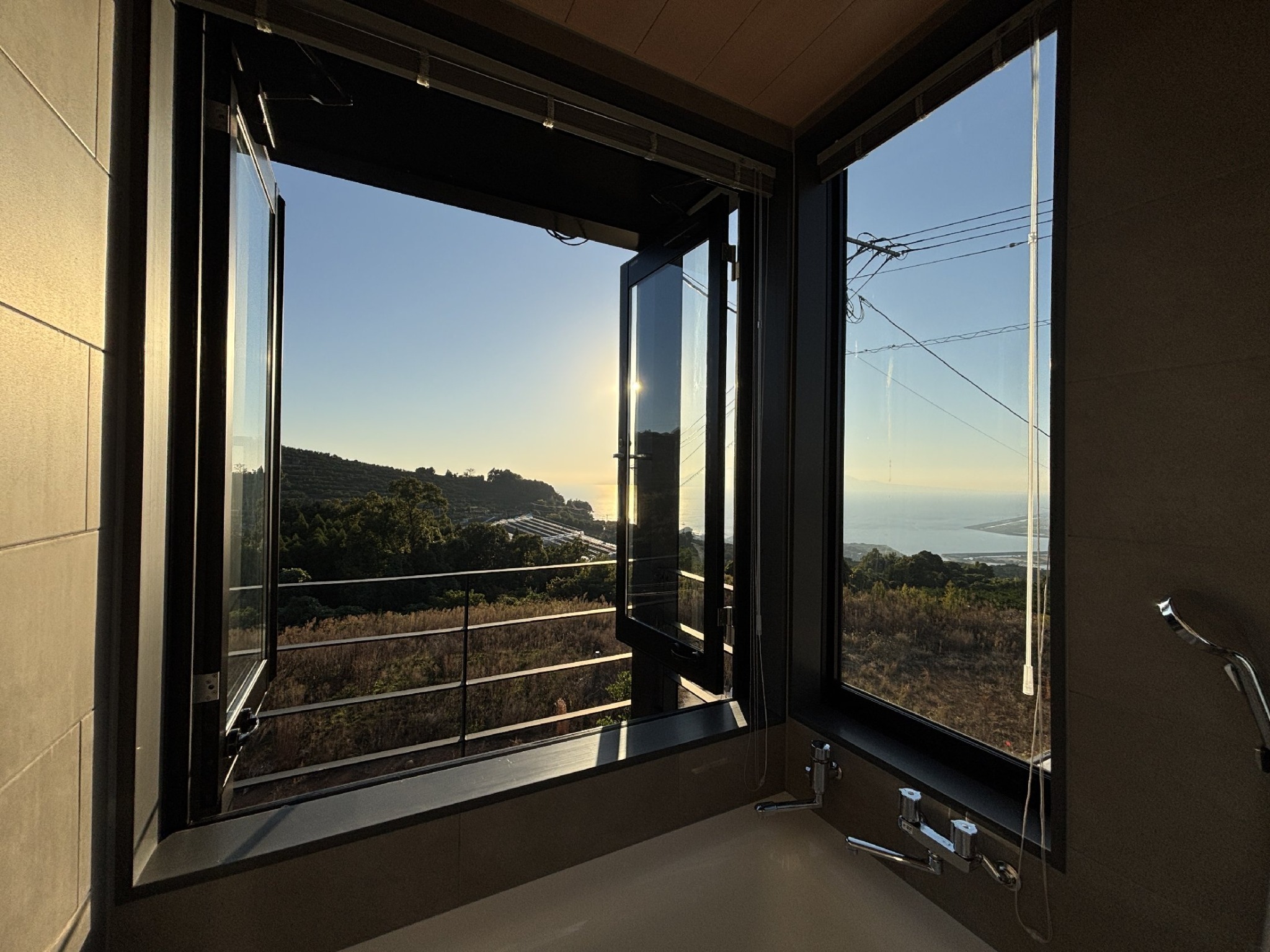熊本市西区河内町野出に佇む「ひとめぼれ夕映」。海に沈む夕陽が美しい、2部屋構成の宿泊施設。