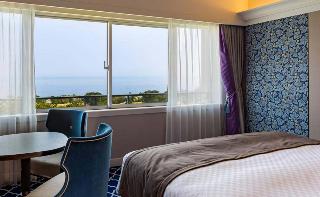 ゴルフの前日に宿泊した。ベルやフロントマンは丁寧な対応。チェックインの際に翌朝の朝食時間がゴルフスタート時刻に合わせて決められる。\部屋はオーシャンビューツインを1人で使用した。冷蔵庫の飲み物は無料で良かった、瓶ビールやお水とお茶のペットボトルがあった。ネスプレッソコーヒーもあって海を眺めながらコーヒーを飲んで寛いだ。\バスルームは、一昔前のような、浴槽、トイレ、洗面台があるバスルームだった。但し...