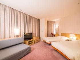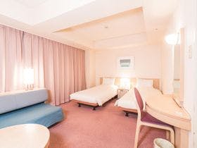 テレビ、衛星放送(無料)、電話、インターネット接続(一部、無線LAN形式)、お茶セット、冷蔵庫、ドライヤー、加湿器(貸出)、個別空調、洗浄機付トイレ、ボディーソープ、シャンプー、リンス、コンディショナー、ハミガキセット、タオル、バスタオル、浴衣、スリッパ