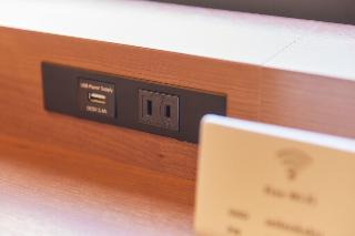 テレビ、電話、インターネット接続(無線LAN形式)、湯沸かしポット、お茶セット、冷蔵庫、ドライヤー、洗浄機付トイレ(一部)、石鹸(固形)、ボディーソープ、リンスインシャンプー、ハミガキセット、カミソリ、タオル、バスタオル、浴衣、金庫